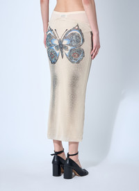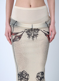 Mesh midi skirt with Tattoo rose and bird motif and double-layer construction. - Mid rise - Elasticated waistband - Stretch-finish - 100% Polyamide. Hand wash - Color: Ecru - Code: JU164 T583 030030