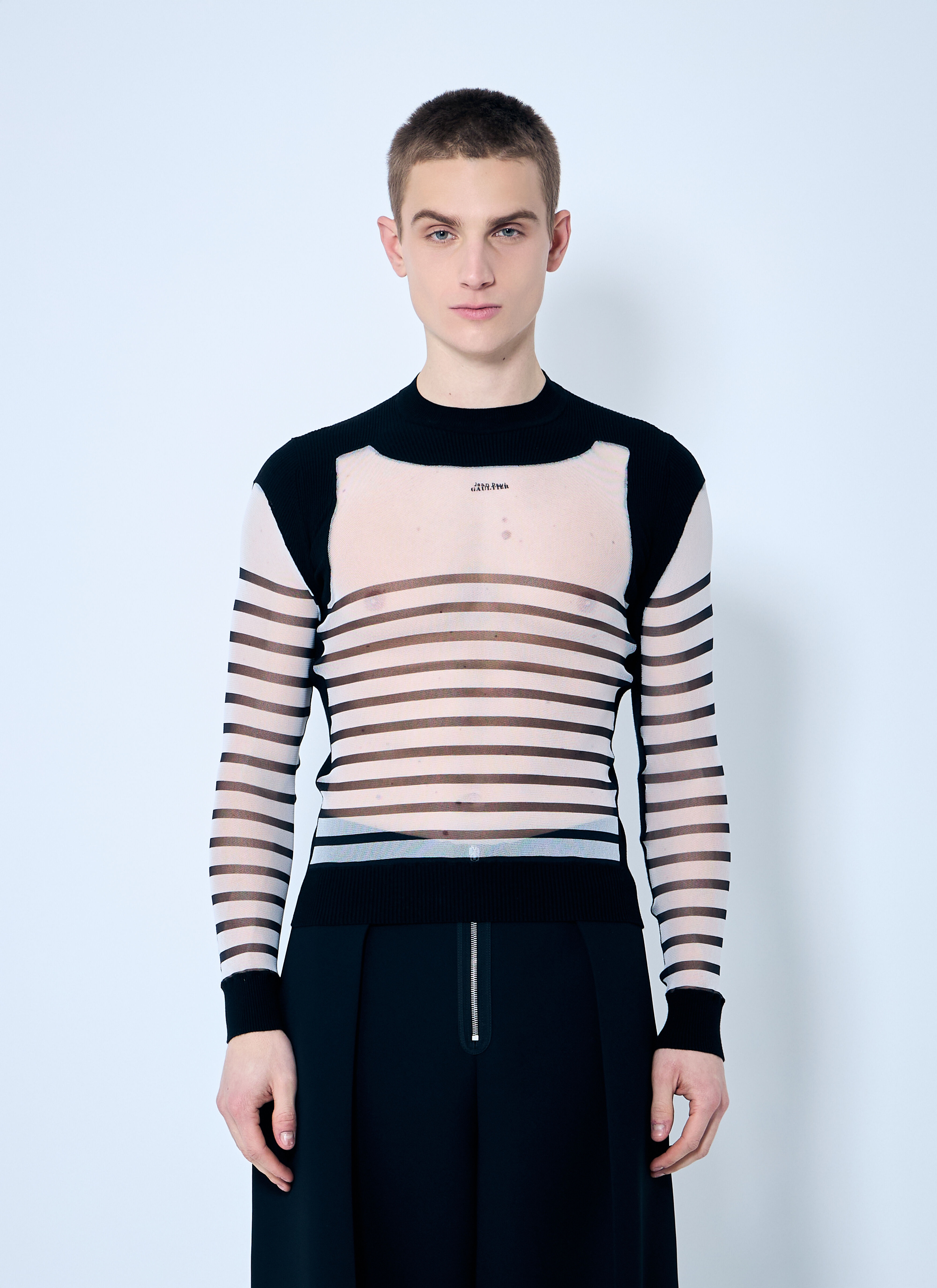 Long sleeve top in mesh and knit. - High neck - Long sleeves - Layered design - Semi-sheer - Fabric One: 100% Polyamide. Fabric Two: 70% Viscose, 30% Polyester. Hand wash - Color: White - Code: 25/33-F-PL069-T574-0100