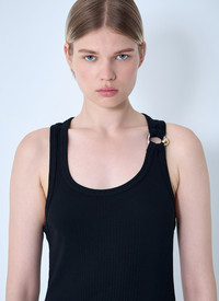 Maxi dress with piercing hardware. - Scoopneck - Camisole sleeves - Gold-tone hardware at strap - 100% Cotton. Hand wash - Color: Black - Code: 25/03-W-DR067-J014-00
