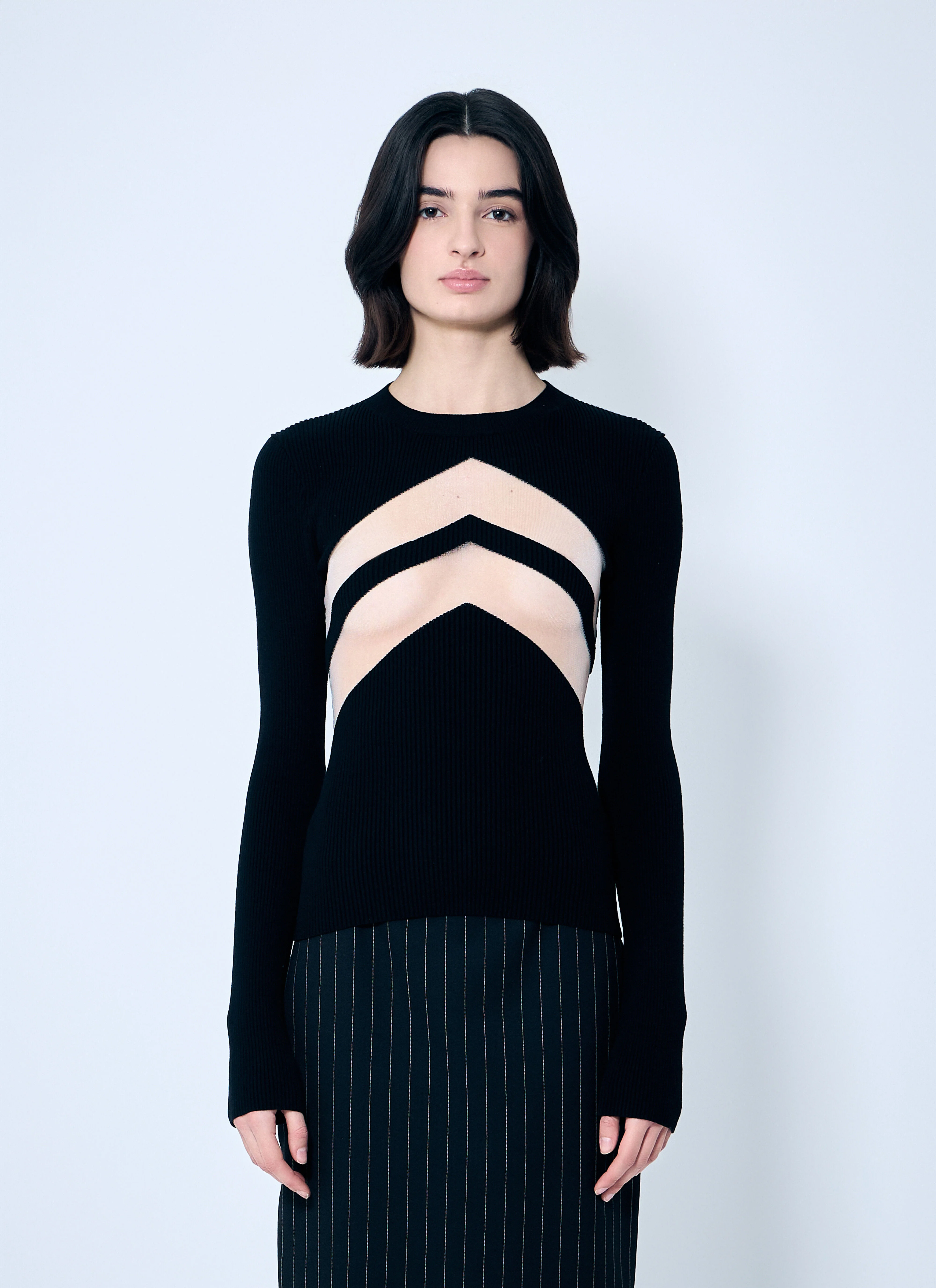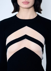 Turtleneck sweater with front transparent panels. - Turtlneck - Long sleeves - Contrast panels - 70% Viscose, 30% Polyester. Hand wash - Color: Black - Code: 25/33-F-TO265-M085-00