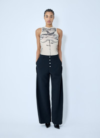 Tailored pants in panel construction. - Mid rise - Front snap-button fastening - Belt loops - Side slip pockets - Panel construction - 100% Polyester. Dry clean - Color: Black - Code: PA194 C081 00