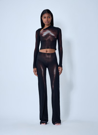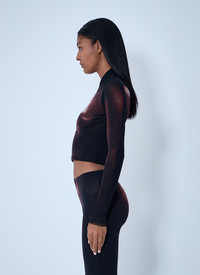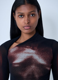 Stretch-finish mesh top in Wood print. - Cut-out neckline - Long sleeves - Straight hem - Logo motif - 100% Polyamide. Hand wash - Color: Black - Code: 25/03-W-TO335-M002P-0060