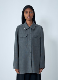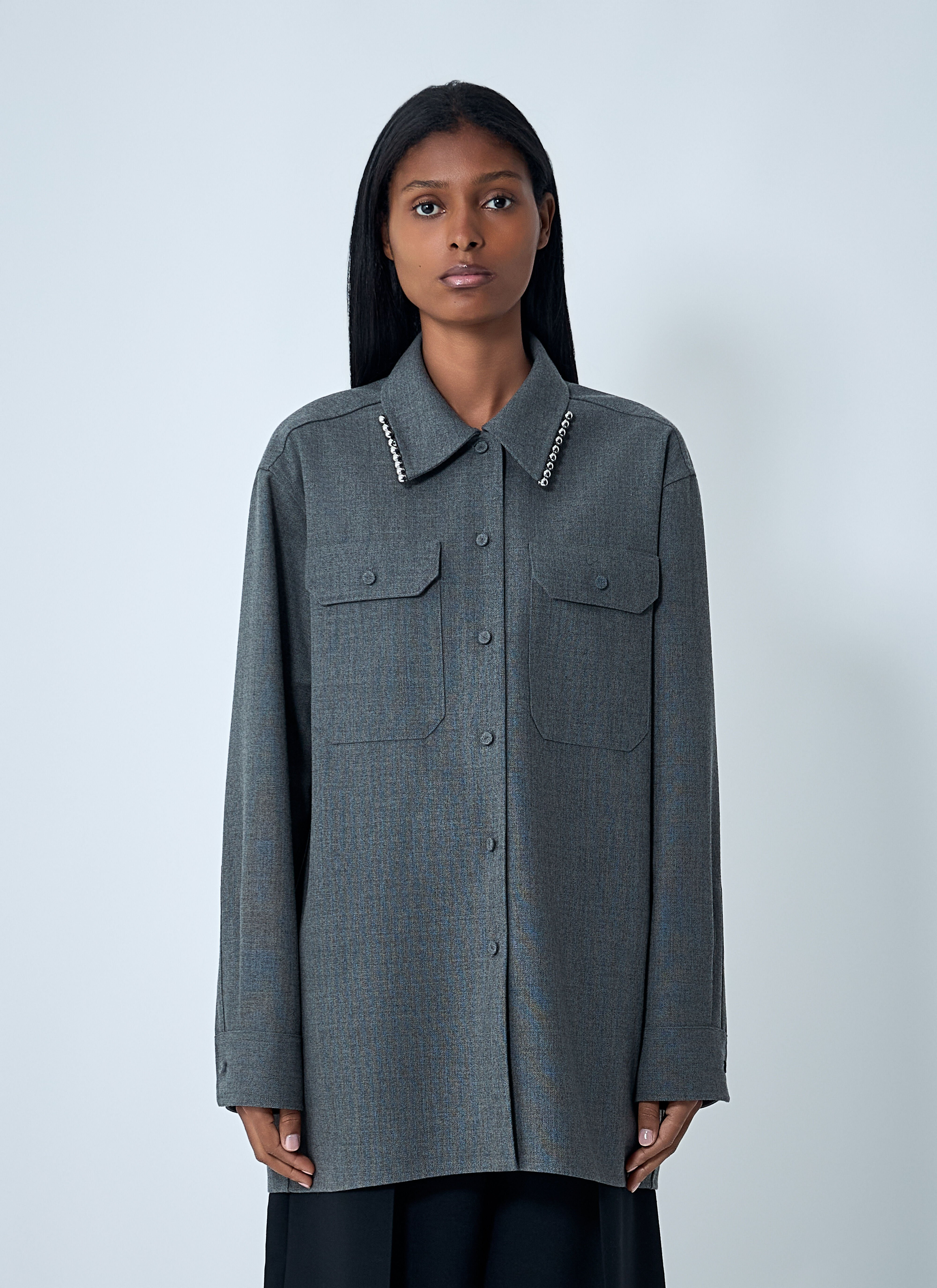 Button-down shirt in wool with beaded collar. - Classic collar - Front button fastening - Long sleeves - Chest flap pockets - Button-fastening cuffs - 100% Wool. Dry clean - Color: Grey - Code: J03DL0210 J41557 030