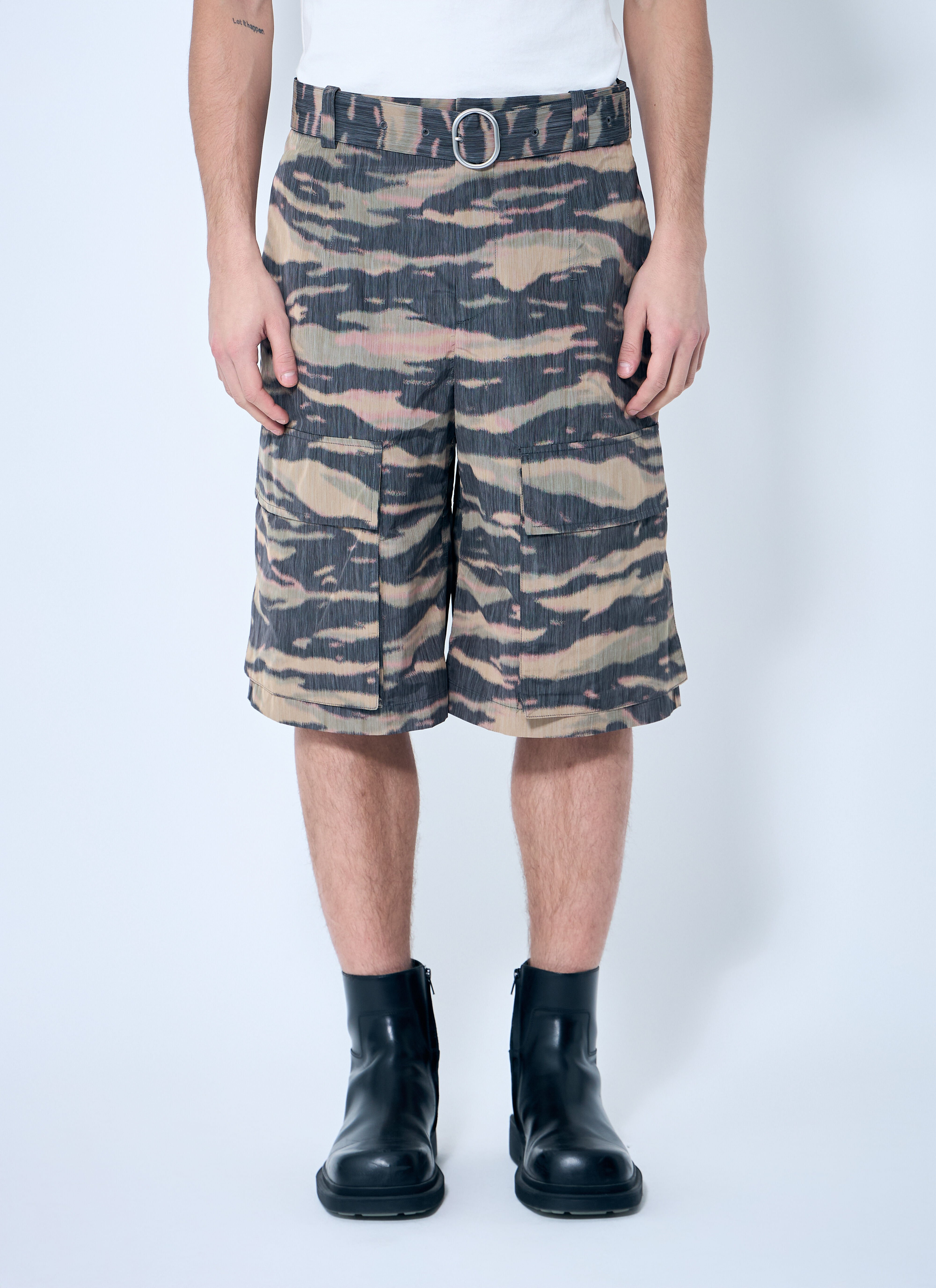 Belted Cargo shorts in camo print. - Mid rise - Hook-and-eye and zip-fly fastening - Detachable belt - Multi-pocket design - Made in Italy - 60% Polyester, 40% Silk. Dry clean - Color: Brown - Code: J22KA0262 J70187 962