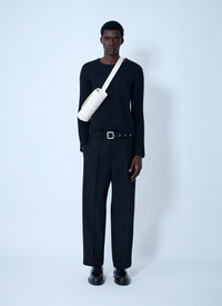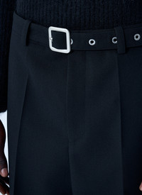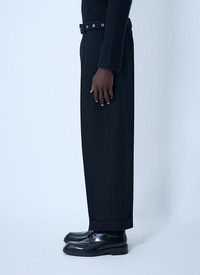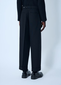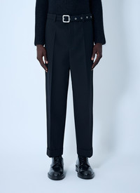 Mid rise tailored pants in wool grain-de-poudre. - Mid rise - Hook-and-eye and zip-fly fastening - Detachbe and adjustable belt - Belt loops - Front pleats - Side slip pockets - Rear jet pockets - 100% Wool. Dry clean - Color: Black - Code: J22KA0230 J41557 001