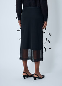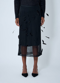 Midi skirt with sheer overlay and feather detailing. - Elasticated waistband - Feather embellishments - Sheer hem panel - 100% Silk. Dry clean - Color: Black - Code: J03MA0263 J16141 001