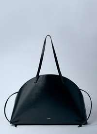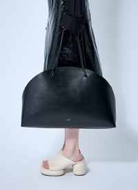 Leather curve shoulder bag in smooth-grain finish. - Twin handles - Open top - Front logo print - One main compartment - Detachable drawstring pouch - Made in Italy - 100% Leather - Color: Black - Code: J07ZH0053 P7100 001