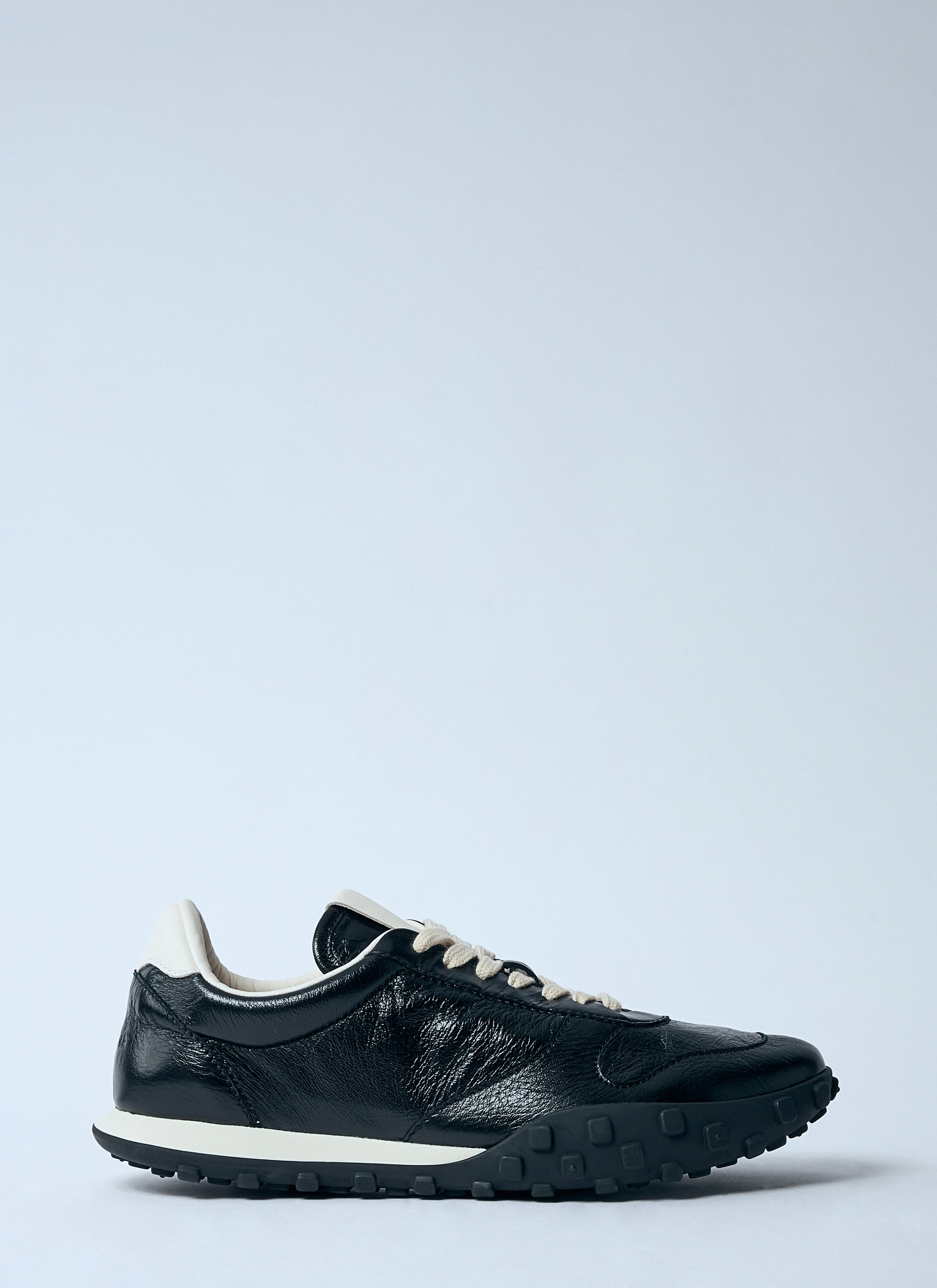 Low-top sneakers in leather. - Round toe - Lace-up fastening - Logo motif at rear - Panel construction - 100% Leather - Color: Black - Code: J16WS0031 P8178 001