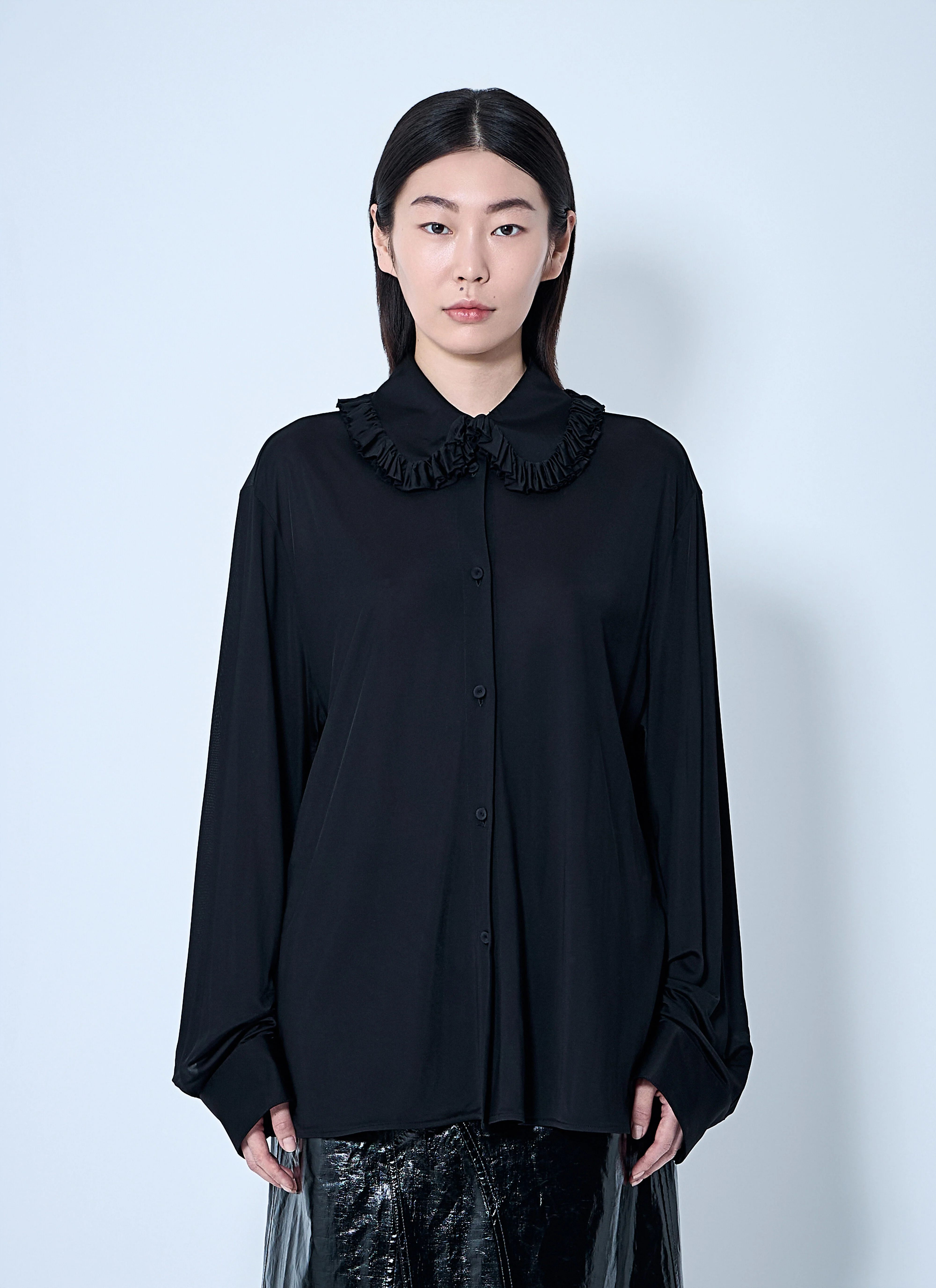 Button-down shirt in viscose weave. - Classic collar - Front button fastening - Long sleeves - Button-fastening cuffs - 100% Viscose. Dry clean - Color: Black - Code: J03DL0192 J20227 001
