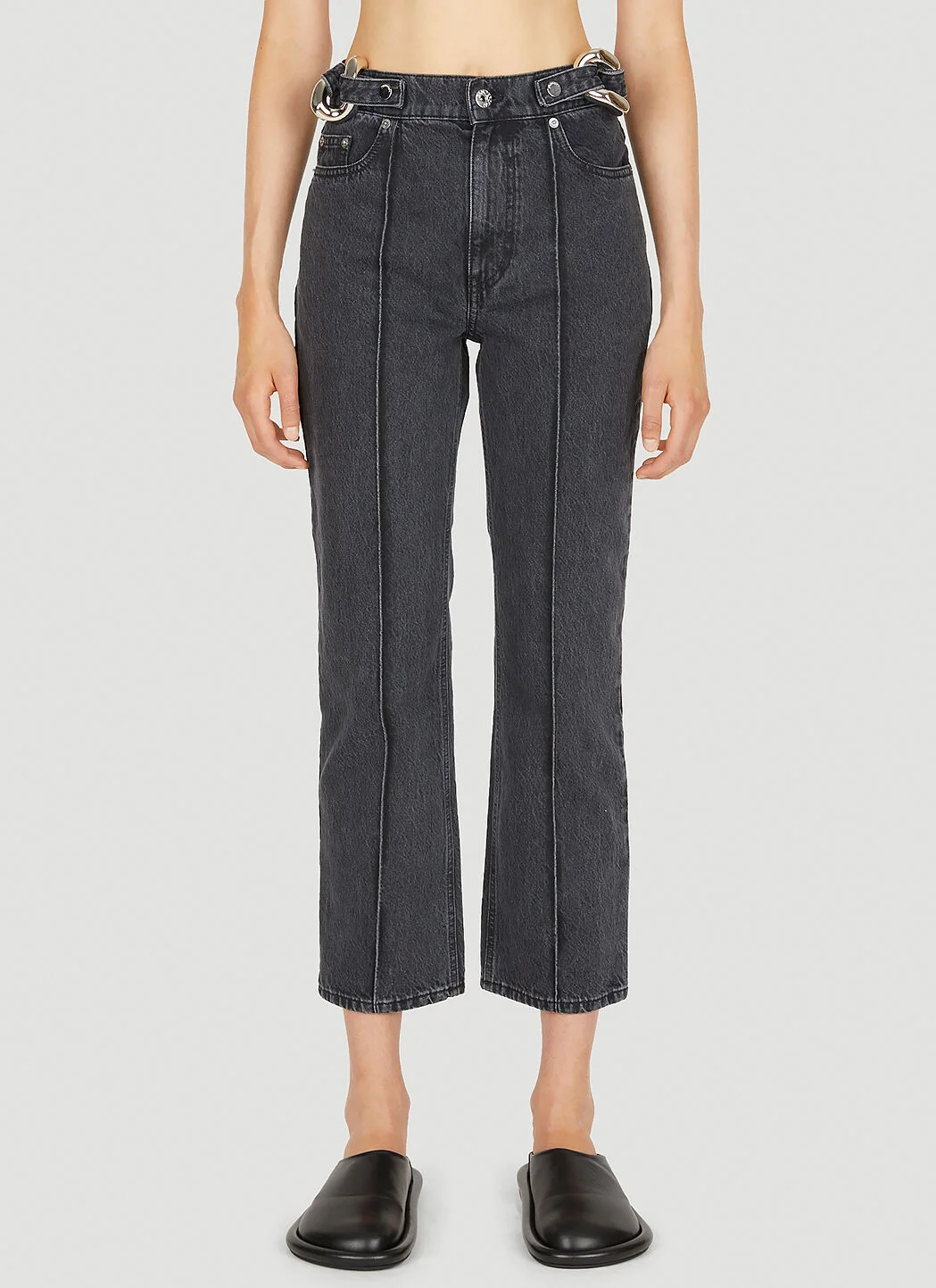 - Cotton in a denim weave - High rise - Top-button and concealed zip-fly fastening - Detachable signature chain trims at waistband - Classic five pocket design - Exposed front seams - Faded wash - Rear logo patch - Made in Italy - 100% Cotton. Machine wash cold - Color: Grey - Code: DT0042 PG0938 999