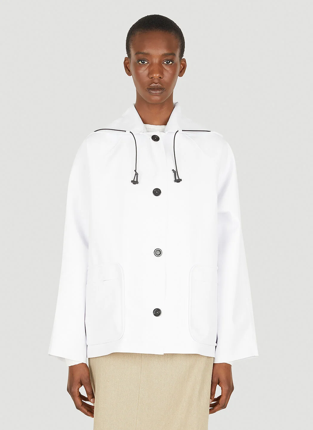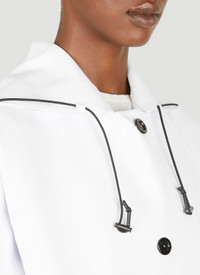 - Technical blend fabrication in a close weave - Drawstring hood - Front button fastening - Long raglan sleeves - Chest patch pockets - Water-repellent - 52% Polyester, 48% Polyurethane - Color: White - Code: C191010000W WHITE