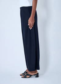 Wide-leg pants in smooth fabric with elasticated waistband. - Elasticated waistband - Wide-leg silhouette - Straight hem - 100% Cotton. Machine wash cold - Color: Navy - Code: 3176604-W604-979