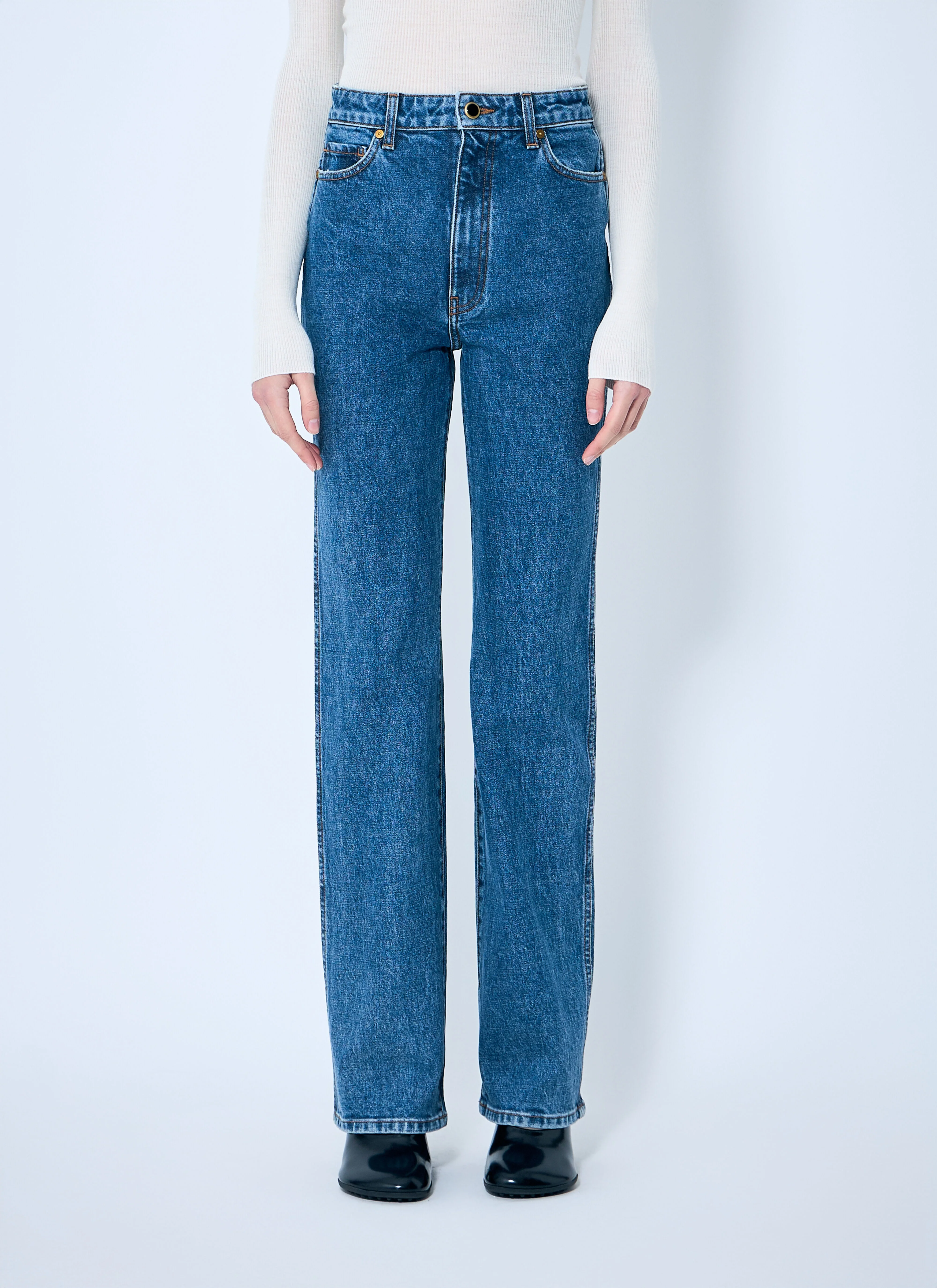 Five-pocket jeans in straight-leg construction. - Mid rise - Top-button and zip-fly fastening - Belt loops - Five pockets - 98% Cotton, 2% Polyurethane. Hand wash - Color: Blue - Code: 1032916009-W916-009