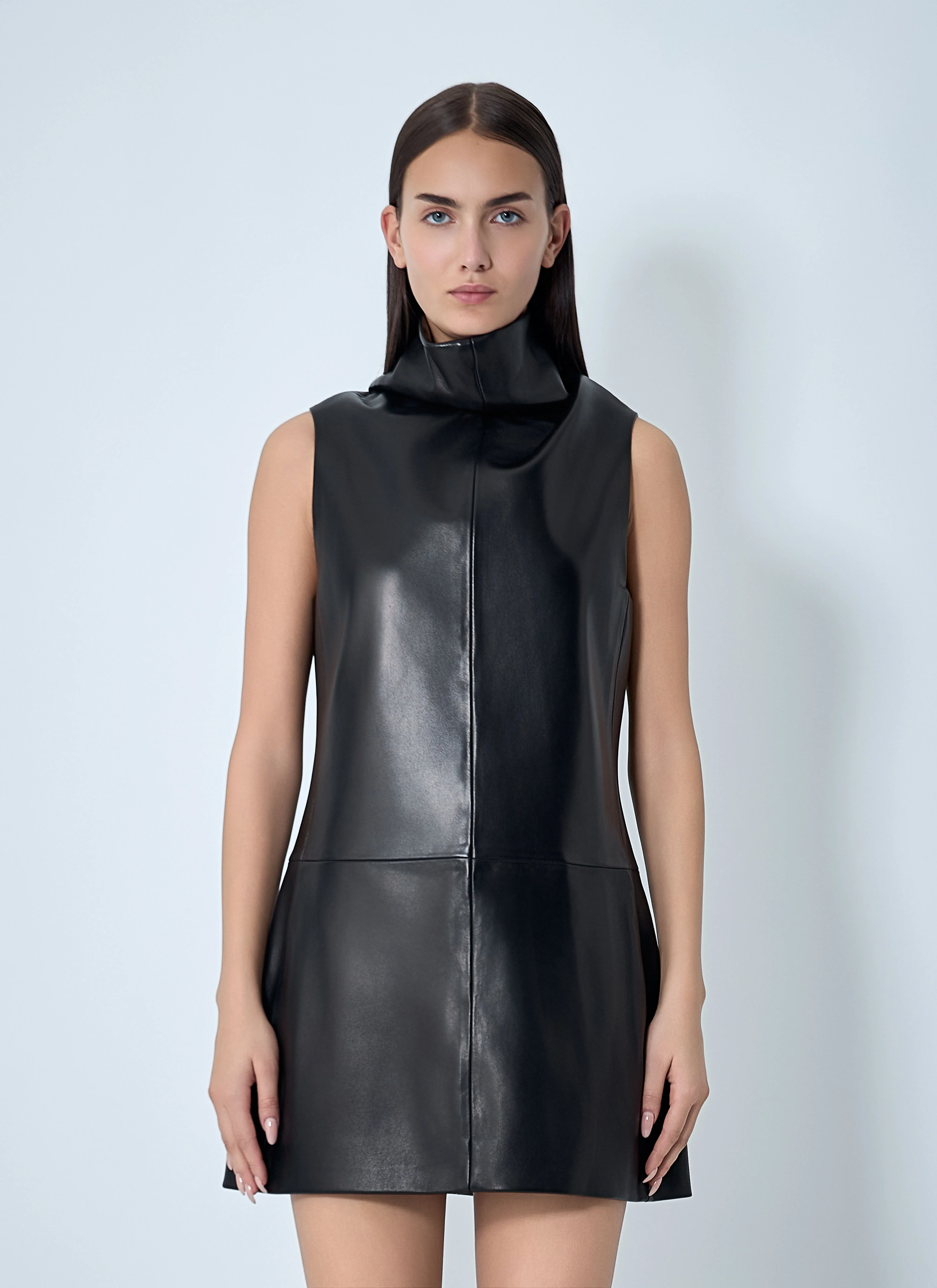 A bell-shaped mini dress with draped, scarf-inspired stand collar and horizontal seaming at rear. - Stand collar - Rear button and zip closure - Panel construction - 100% Leather. Specialist Dry clean - Color: Black - Code: 5537937 L937 200
