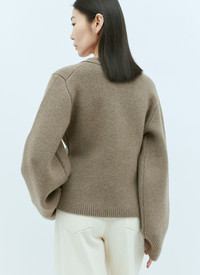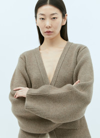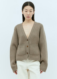 Scarlet cardigan in cashmere knit. - V neck - Front button fastening - Long sleeves - Front patch pockets - Ribbed trims - 100% Cashmere. Dry clean - Color: Beige - Code: 8267600-K600-216