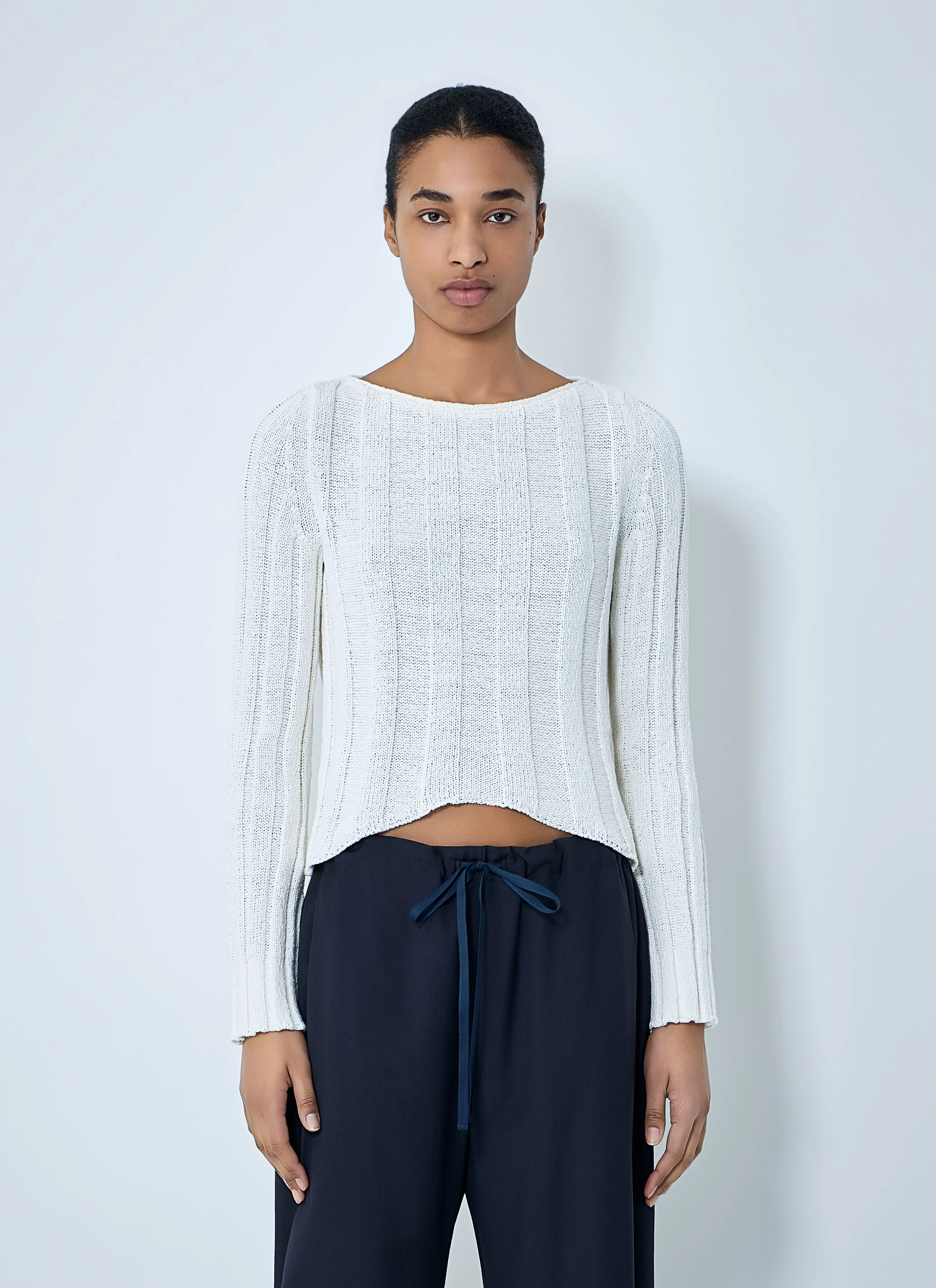 Ribbed knit top with curved hem. - Crewneck - Long sleeves - Curved hem - 77% Cotton 23% Polyamide - Color: Cream - Code: 18143134-183
