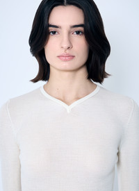 Merino wool-blend knit. - V neck - Long sleeves - Made in Italy - 99% Wool, 1% Polyamide. Hand wash - Color: White - Code: 9699511 K511 183
