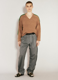 Ugo side pants with satin waistband and contrast side patches. - Mid rise - Top-button and zip-fly fastening - Belt loops - Side slip pockets - Front creases - Side patches - Rear patch pocket - 65% Polyamide, 25% Cotton, 10% Elastane. Contrast: 53% Cotton, 47% Acetate. Dry clean - Color: Grey - Code: KKSS24T01-1