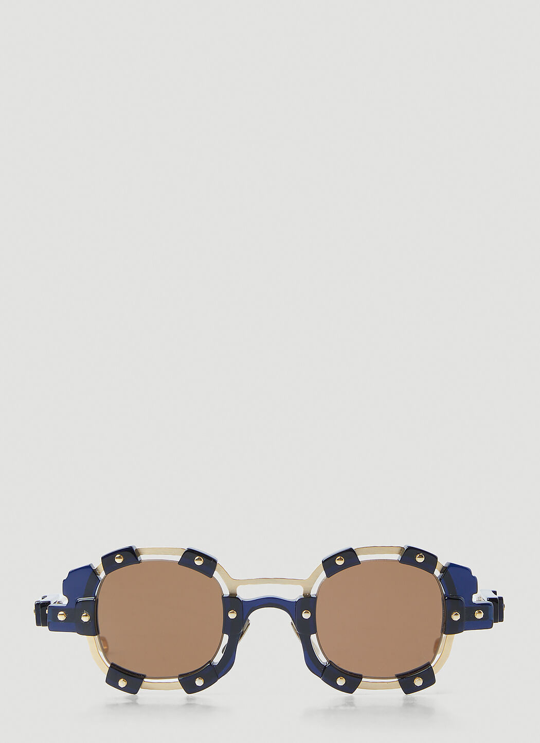 V1 Sunglasses with hardware frame. - Square frames - Tinted lenses - 100% UV protection - Anti-reflective coating - Interior logo print - Made in Italy - 100% Acetate. 100% Metal - Color: Blue - Code: KRS0V1BG00GD002B