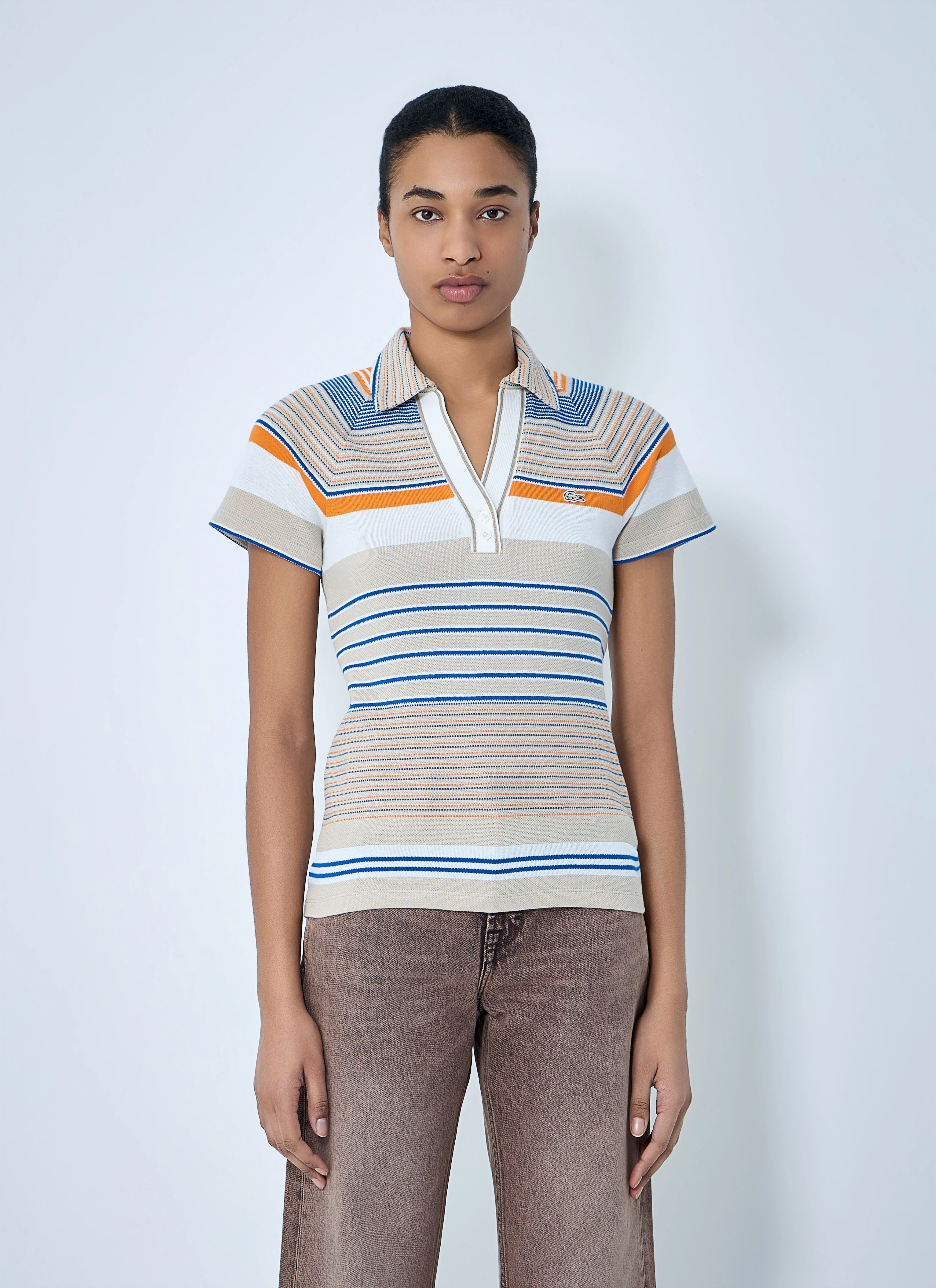 Polo shirt in striped knit with short sleeves. - Classic collar - Front button placket - Short sleeves - 100% Cotton - Color: White - Code: PF2592-TI9