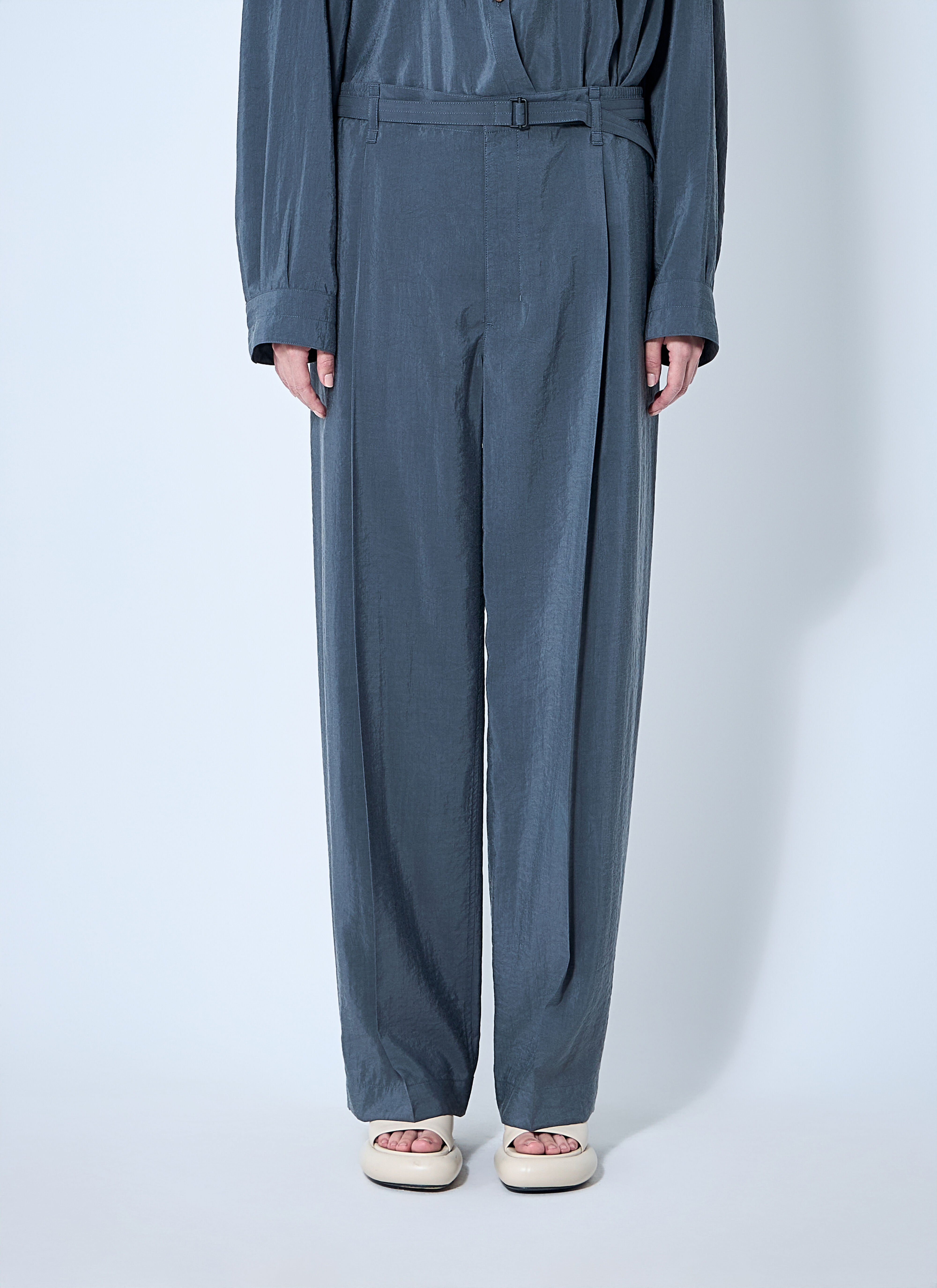 Belted pants in silk-blend weave. - Mid rise - Top-hook-and-eye and zip-fly fastening - Belt loops - Detachable and adjustable belt - Front pleats - Side slip pocket - Rear welt pocket - 76% Silk, 24% Polyamide. Hand wash - Color: Grey - Code: PA1206 LF1308 BK991