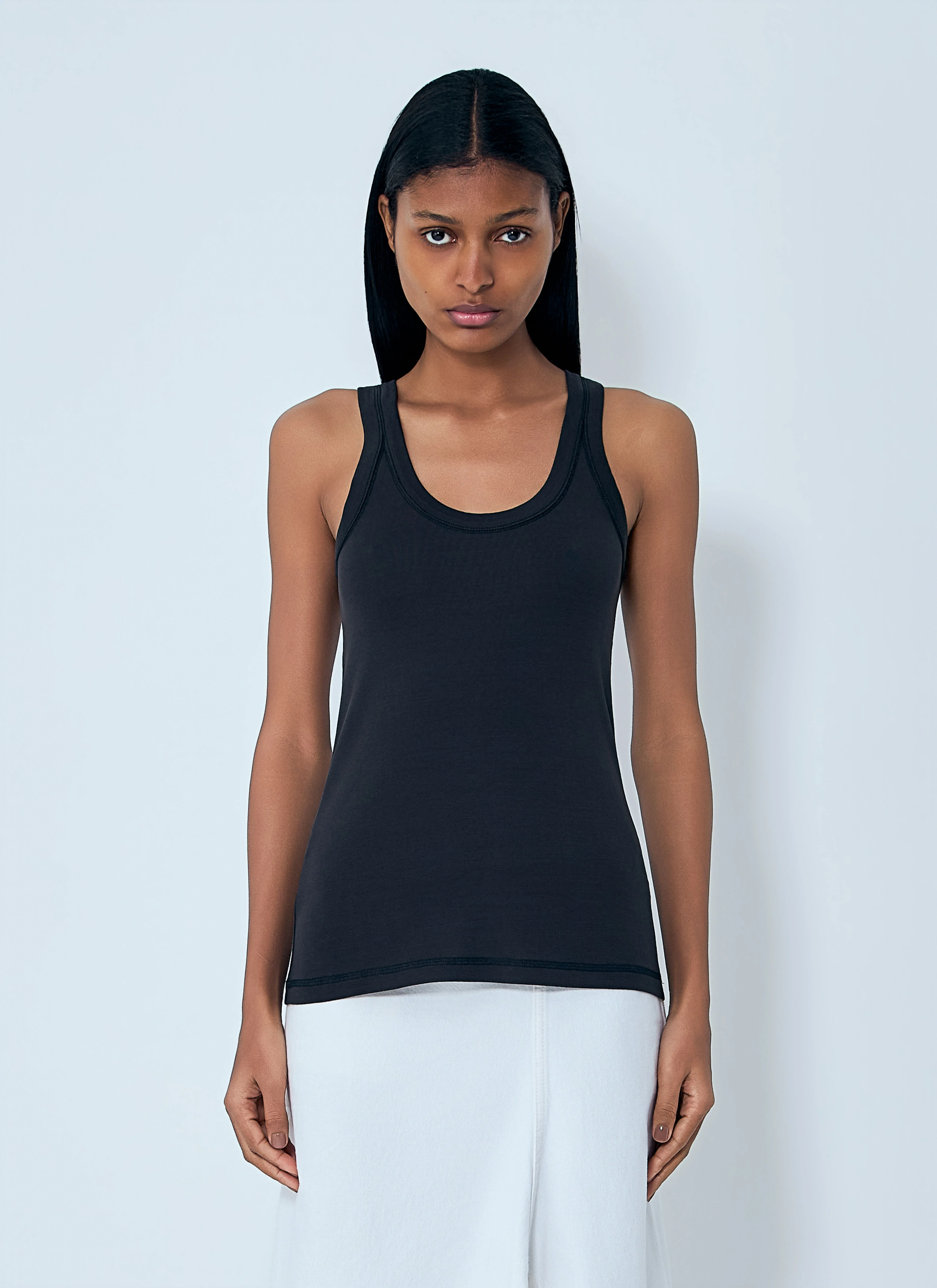 Racerback tank top in cotton jersey. - Scoop neckline - Sleeveless design - Ribbed trims - 100% Cotton - Color: Black - Code: TS0001 LJ1016 BK998