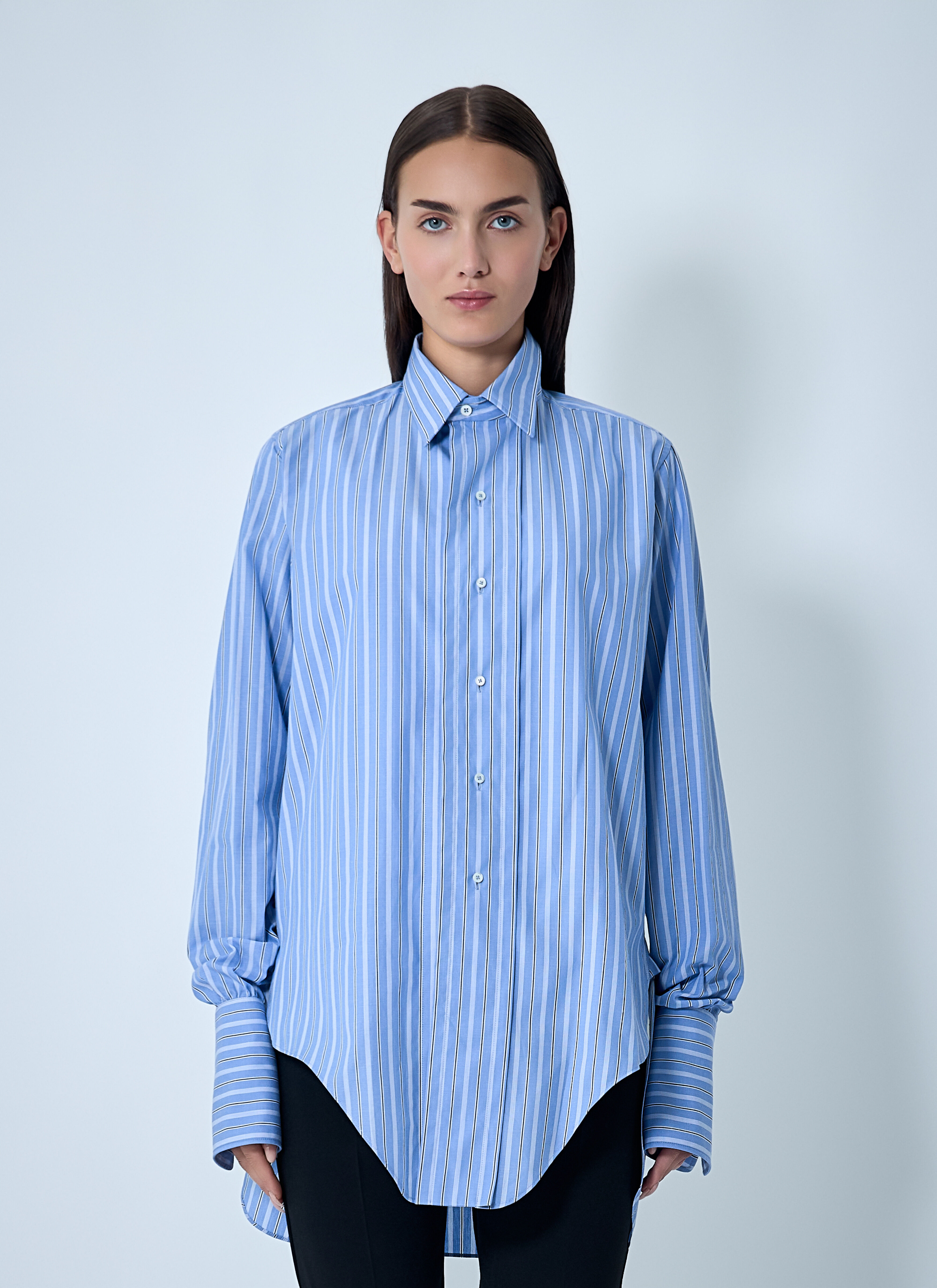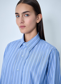 Button-down shirt in striped cotton poplin. - Classic collar - Front button fastening - Long sleeves - Button-fastening cuffs - 100% Cotton. Machine wash cold - Color: Light Blue - Code: S29DT0006 M35625 002F
