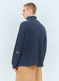 Summer shetland knit sweater in linen-and-wool-blend knit. - Stand collar - Front zip fastening - Long sleeves - Ribbed trims - Distressed - 67% Linen, 33% Wool. Dry clean - Color: Blue - Code: S67HL0008 M13024 524F