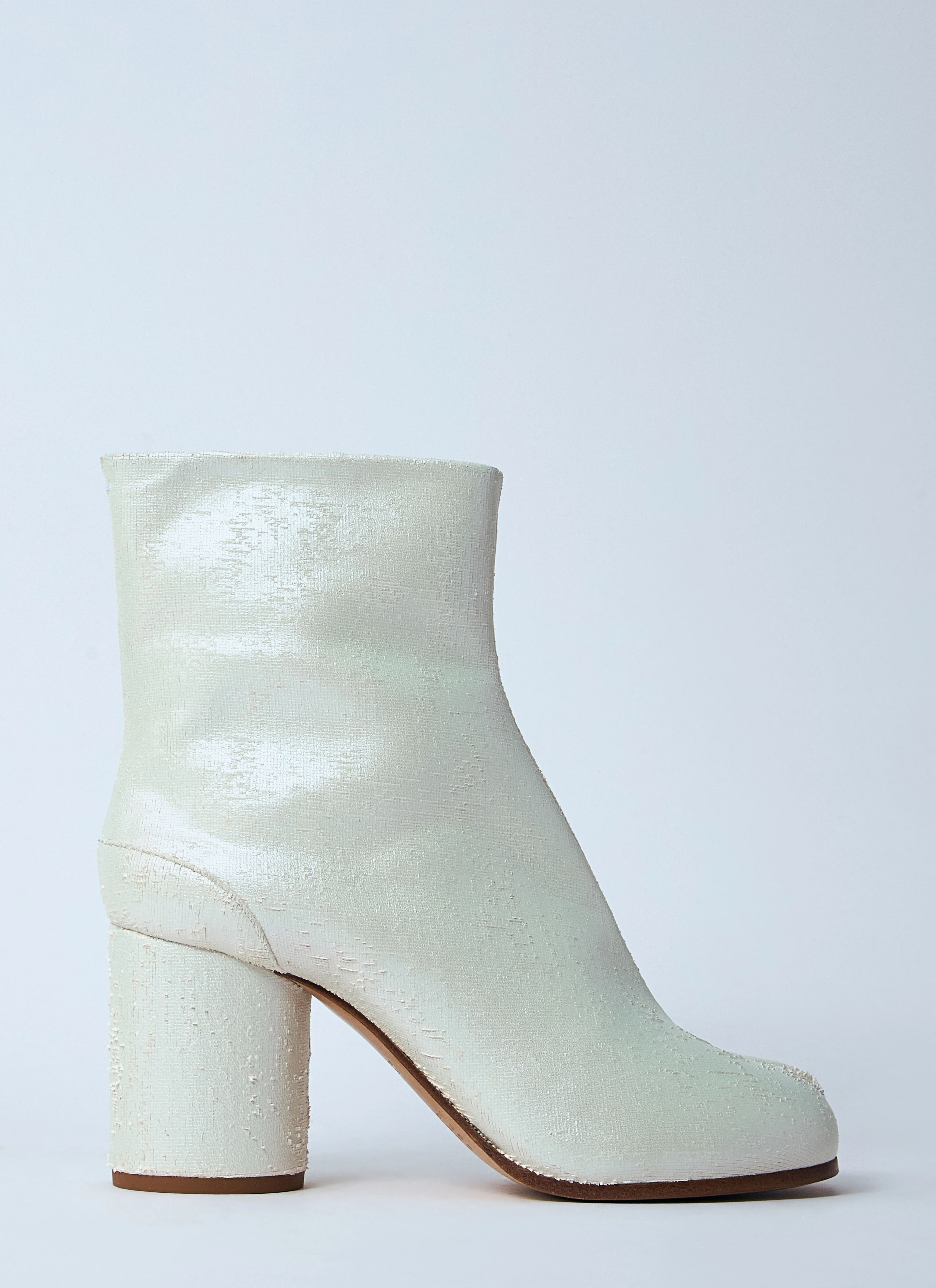 Tabi ankle boots in distressed suede finish. - Cleft toe - Side hook fastening - Cylindrical heel - Signature stitching at rear - Made in Italy - 100% Leather - Color: White - Code: S58WU0260 P8159 HA740