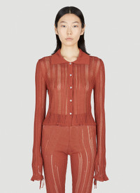 - Technical-blend fabrication in a knit weave - Classic collar - Front button fastening - Long sleeves - Self-tie fastening at cuffs - Made in Italy - 88% Viscose, 12% Polyamide. Hand wash - Color: Brown - Code: KN155CAM 15