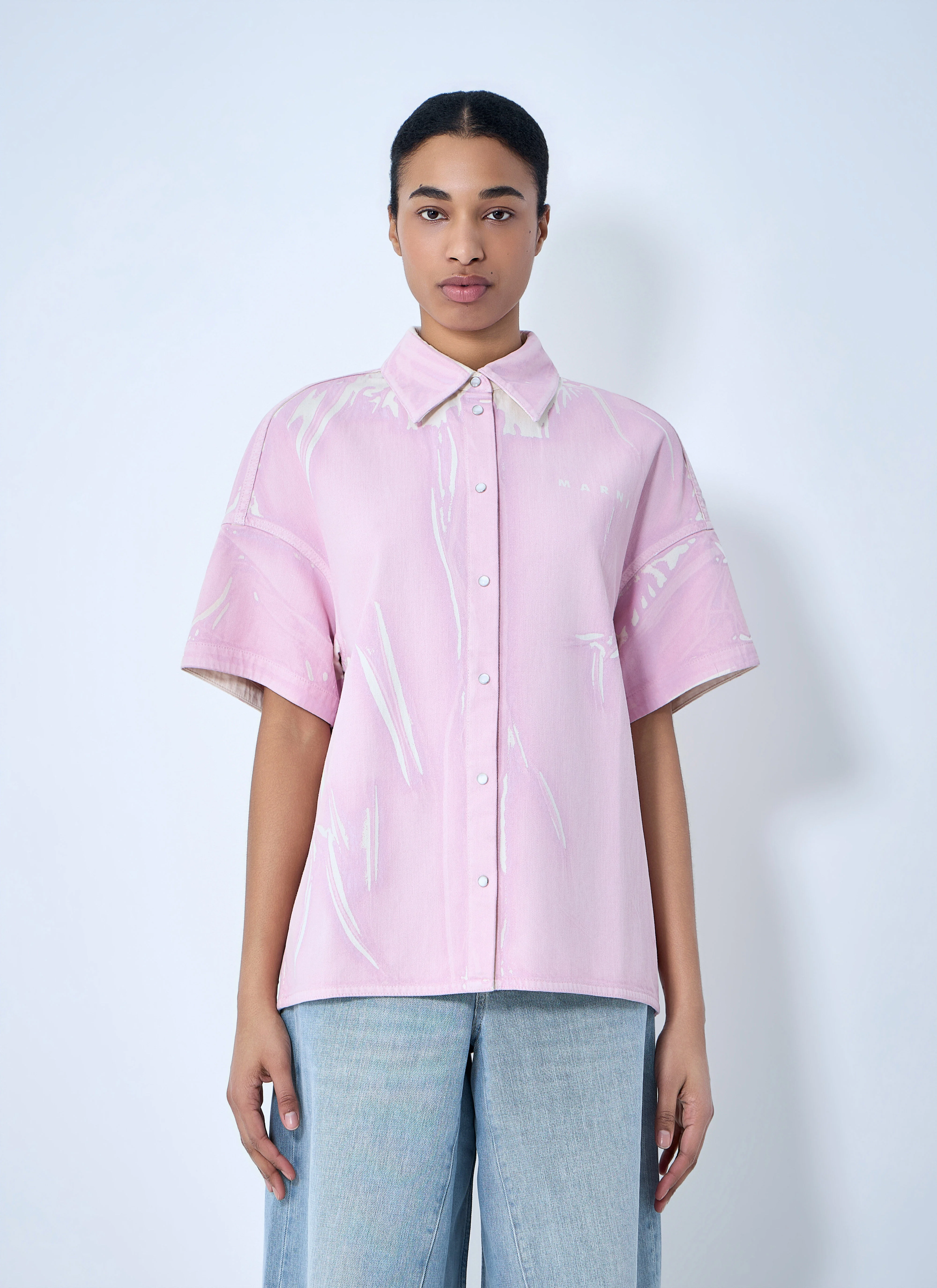 PINK SCREEN-PRINTED DENIM SHIRT
