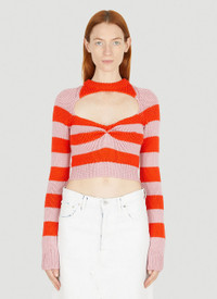 - Wool in a knit weave - Crewneck - Long sleeves - Chest cut out - All-over striped motif - Cropped length - 100% Wool. Dry clean - Color: Pink - Code: GCMD0393Q1 UFWH09 RGC18