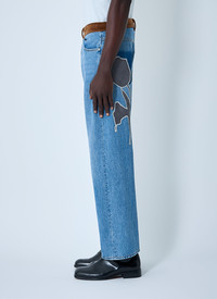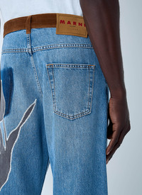 Five-pocket jeans in wide-leg construction with velvet waistband. - Mid-rise - Top-button and zip-fly fastening - Belt loops - Five pockets - 100% Cotton. Dry clean - Color: Denim - Code: PUJU0021QS USCY44 00B96