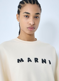 IVORY COTTON CREWNECK T-SHIRT WITH PRINTED MARNI LOGO