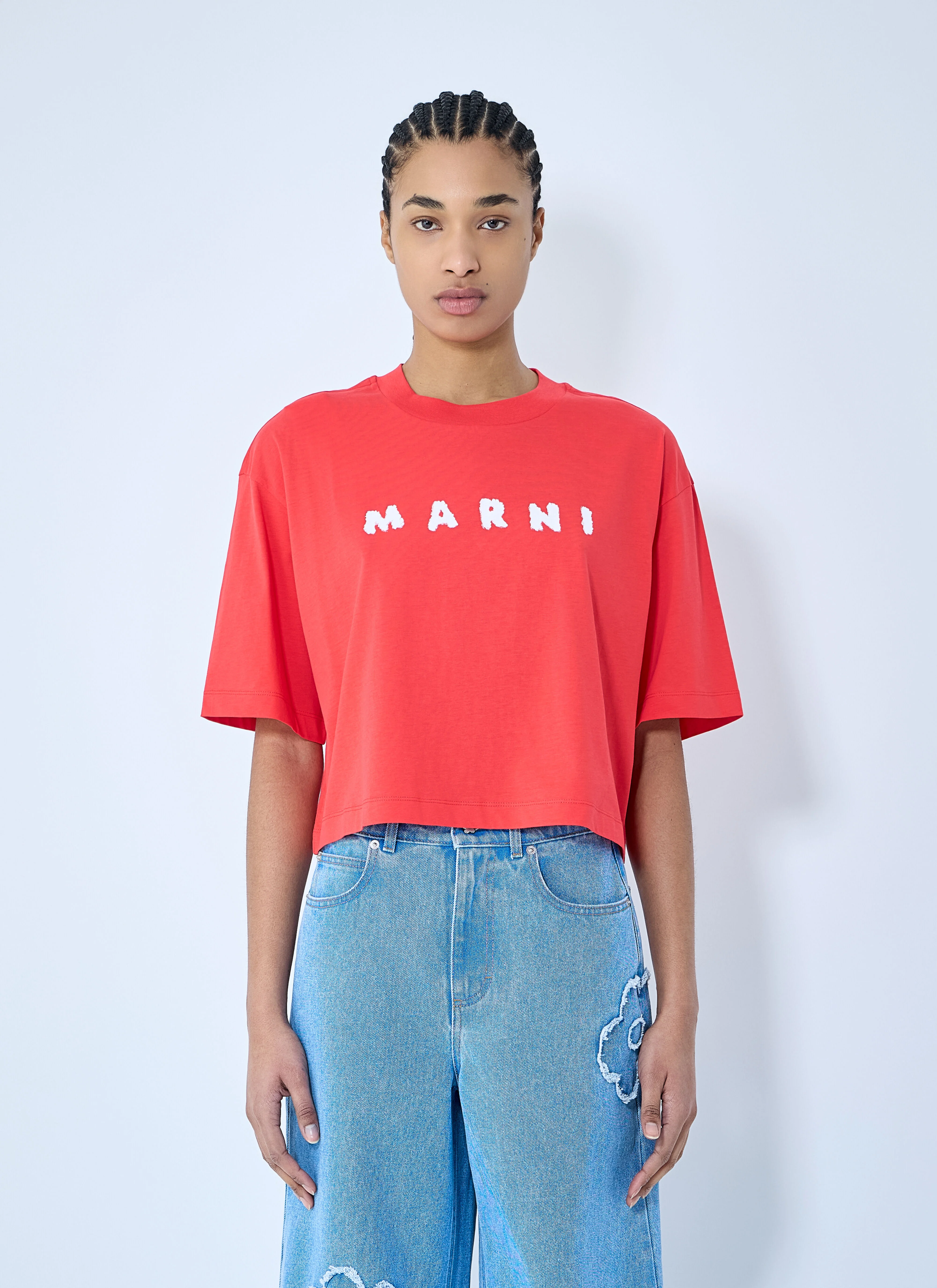 RED BOXY T-SHIRT WITH MARNI SCRIBBLED LOGO