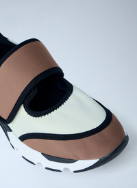 WHITE AND LIGHT BROWN LYCRA MARY JANE RUNNING SNEAKER