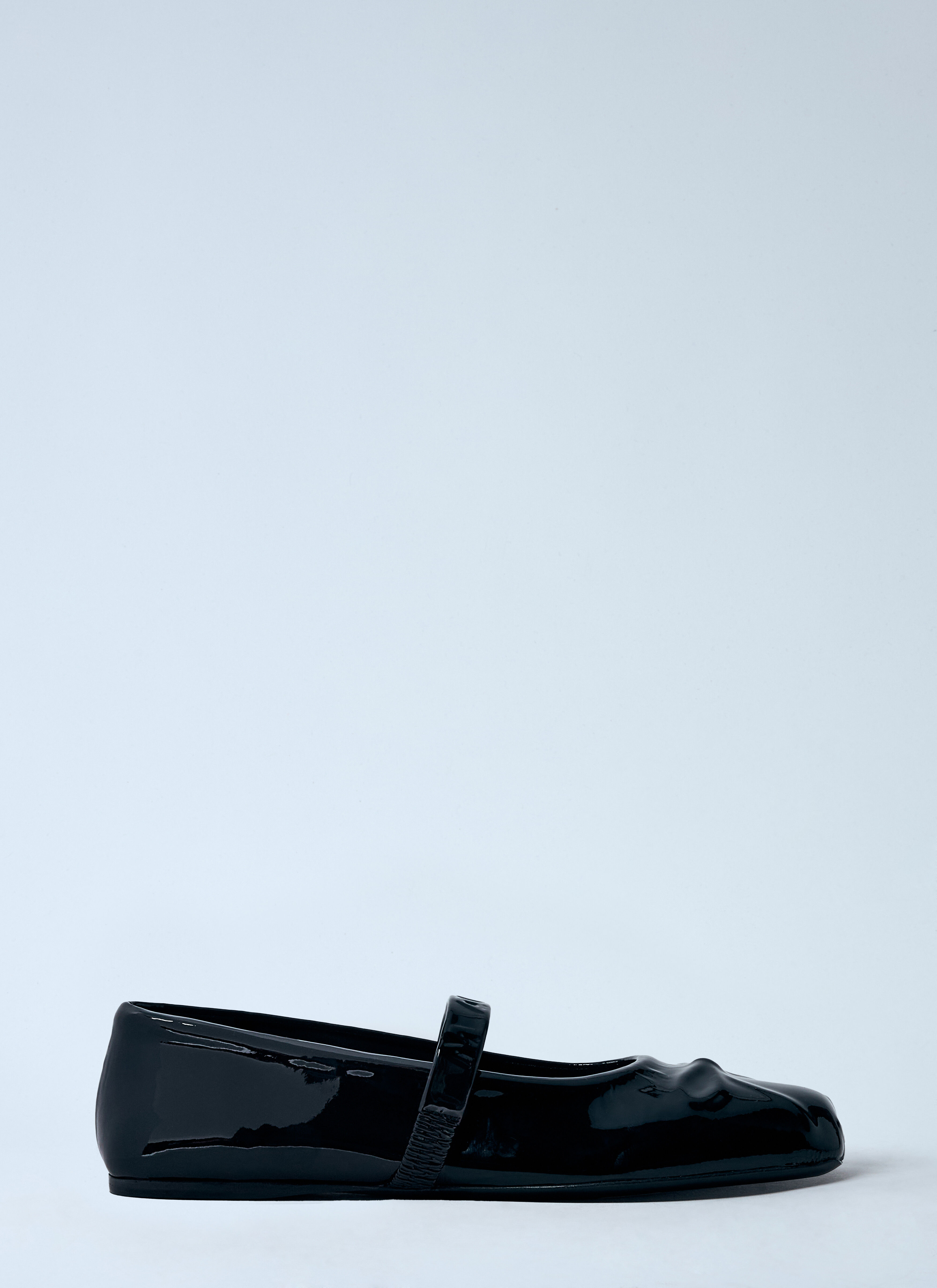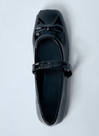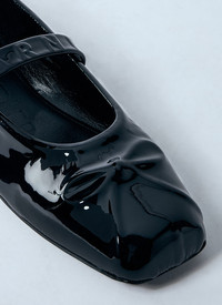 Square-toe Mary Jane shoes crafted in glossy patent leather. - Square toe - Partially elastic strap at front - Handcrafted 3D bow detail at front - Logo motif - Flat sole - Made in Italy - 100% Leather - Color: Black - Code: MJMS007700 P0410 00N99