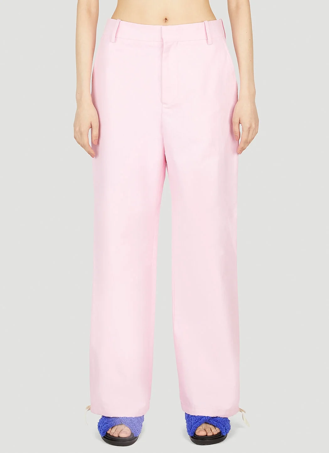- Technical blend fabrication in a close weave - High rise - Concealed fly fastening - Belt loops - Side slip pockets - Side patch pocket - Drawstring cuffs - Made in Italy - 38% Polyamide, 32% Linen, 30% Cotton. Machine wash - Color: Pink - Code: PAMA0390X0 UTN903 00C09