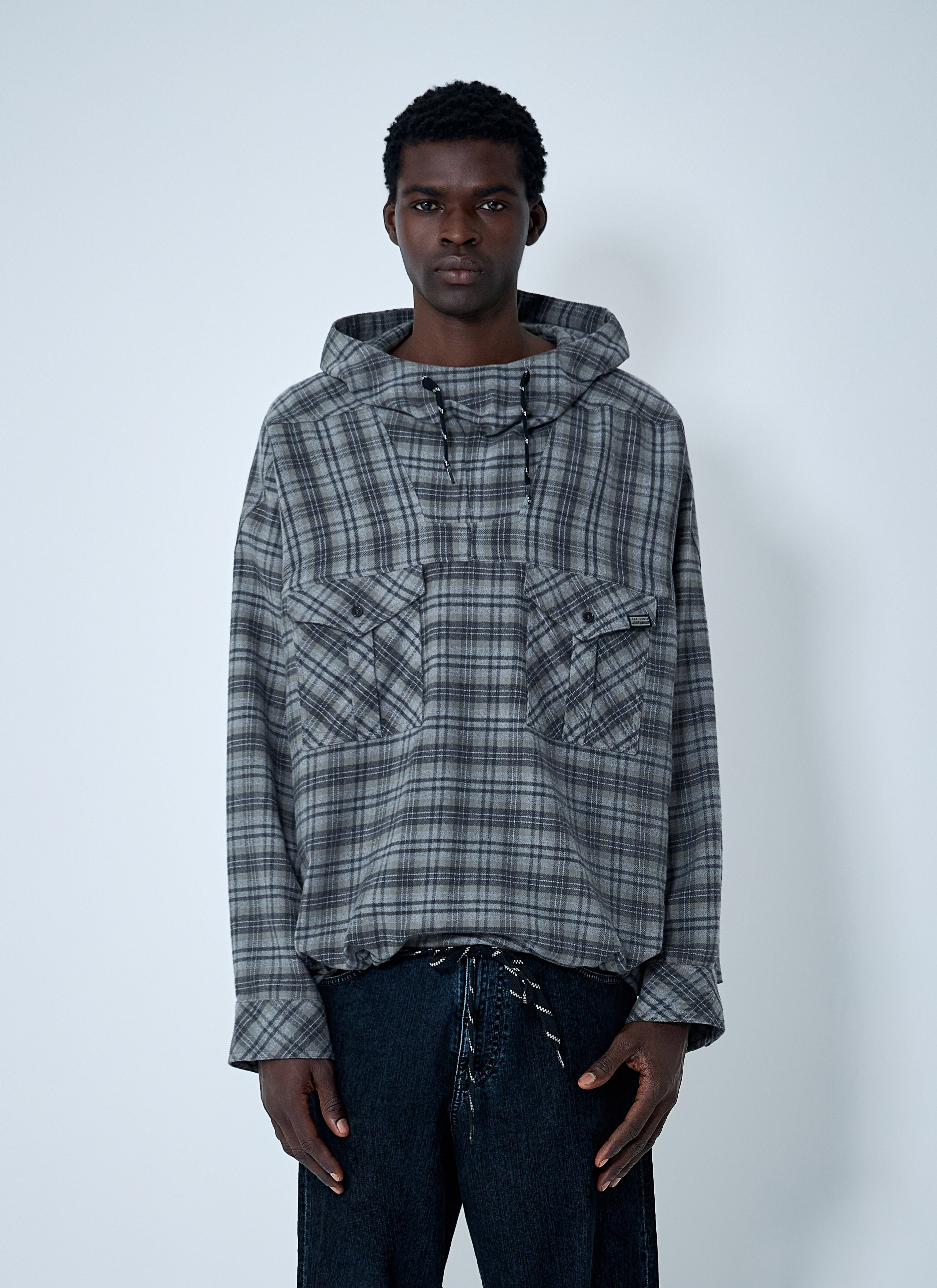 Cotton-fleece hooded sweatshirt in check motif. - Hood - Long sleeves - Front snap-button fastening pockets at front - Drawstring trims - 100% Cotton. Machine wash cold - Color: Grey - Code: 471WS33051 GRY