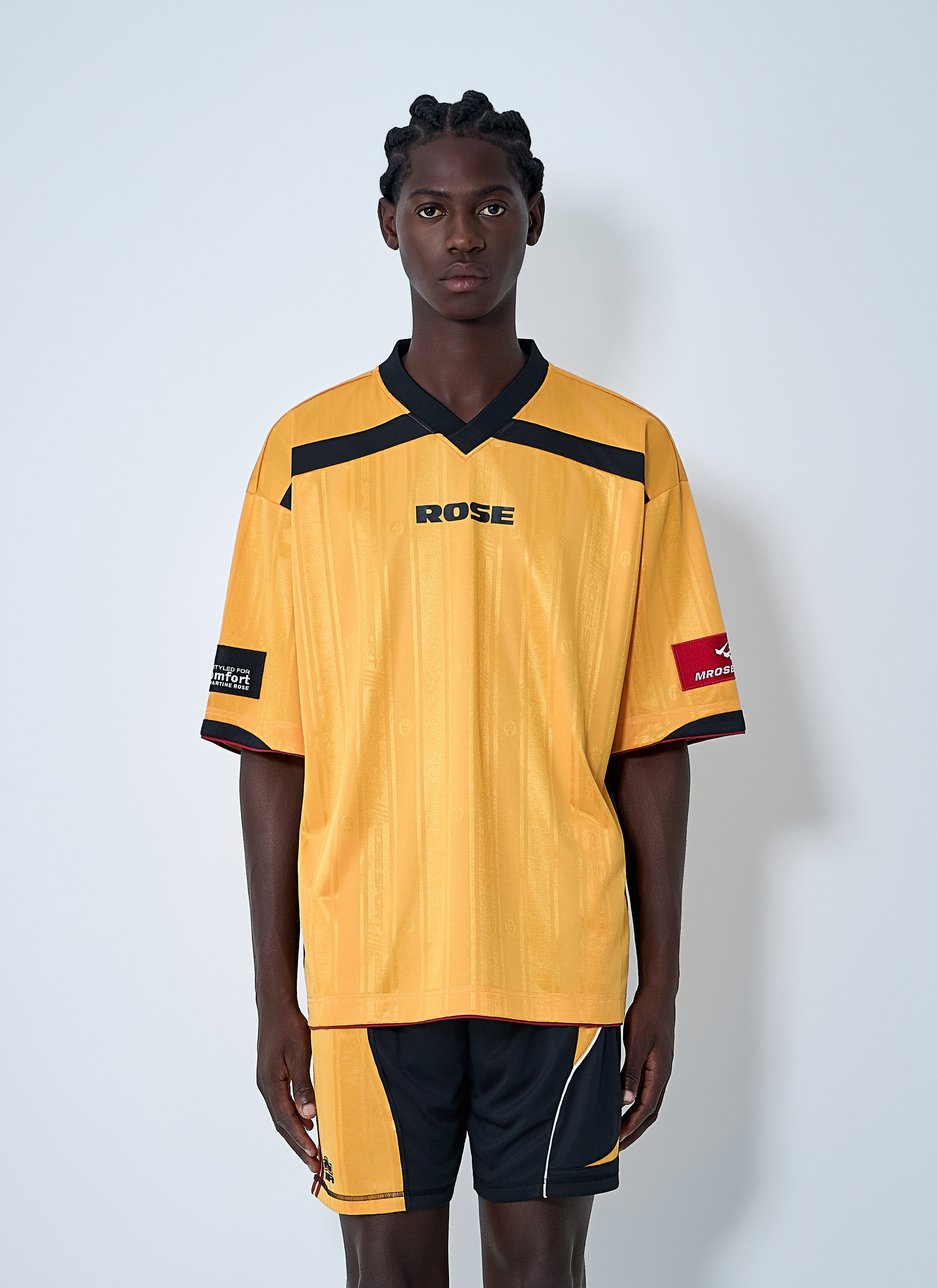 Logo motif T-shirt in jersey. - V neck - Short sleeves - Multiple logo motif - 100% Polyester. Machine wash cold - Color: Yellow - Code: 197JT14307 YLW