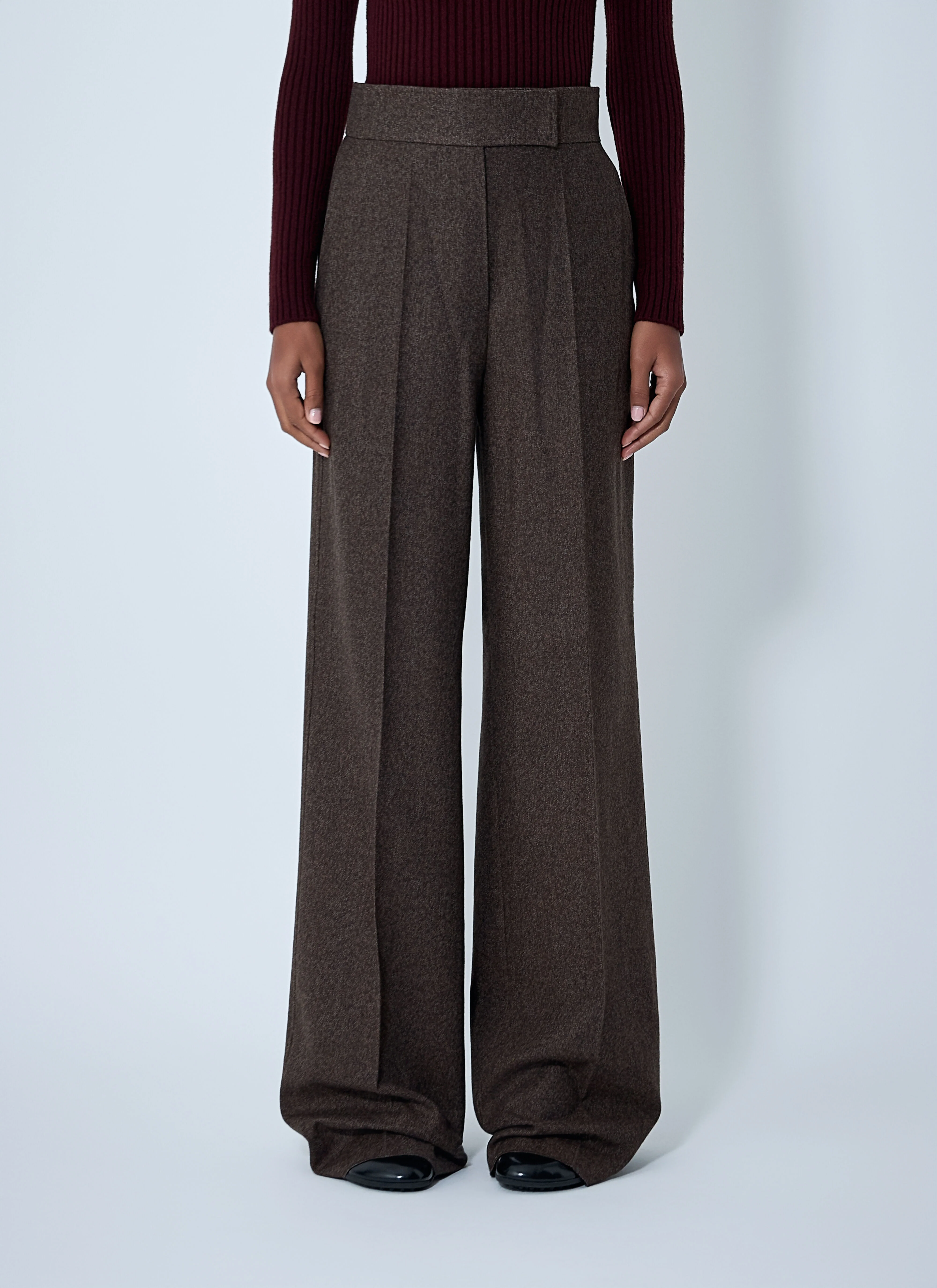 High-rise wide-leg pants in wool blend. - High rise - Hook-and-bar fastening - Front pleats - Side slip pockets - 100% Wool. Dry clean - Color: Brown - Code: 2521136323600 001