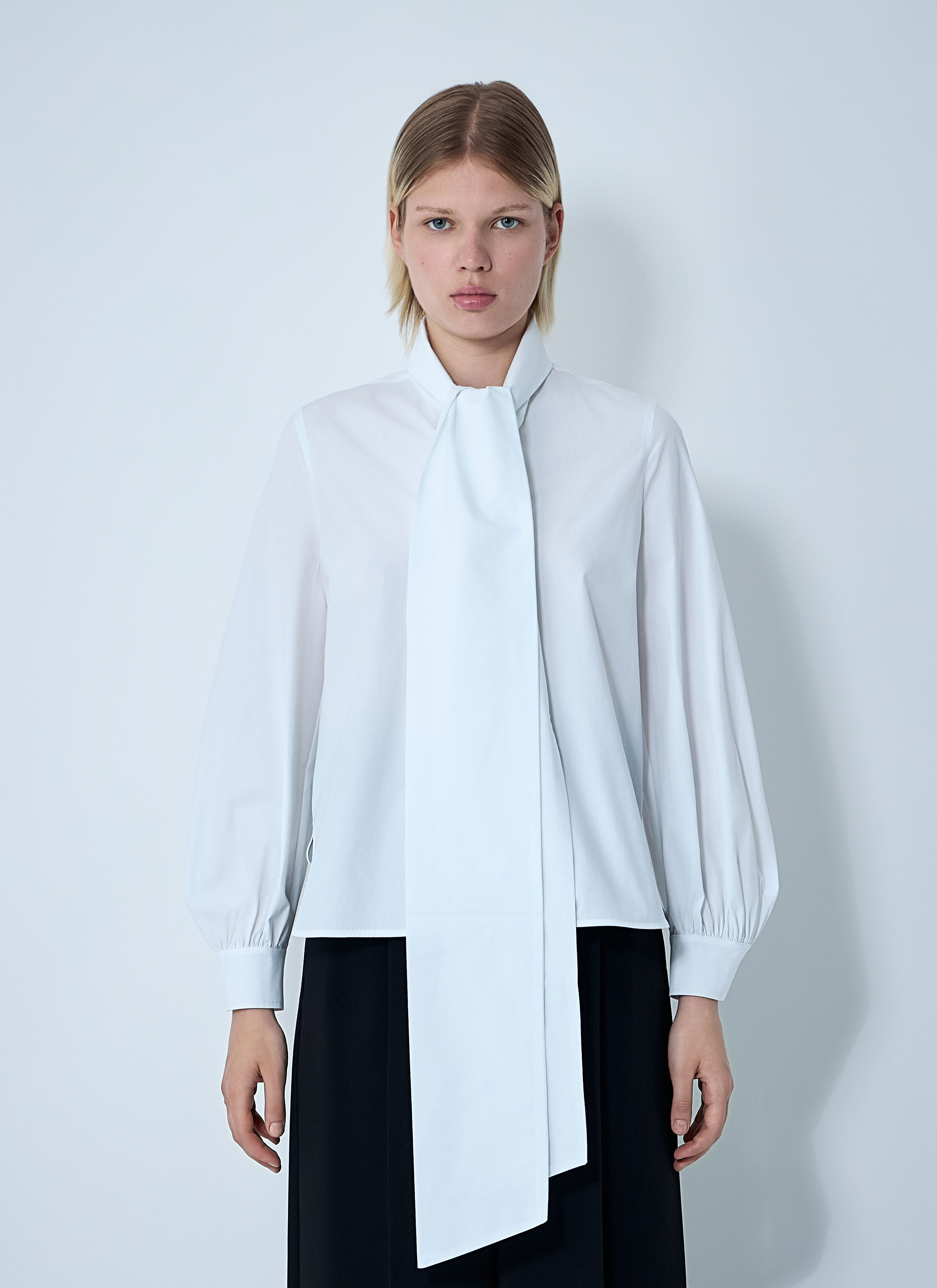 Button-down shirt in cotton poplin with self-tie construction at front. - Pussey-bow construction - Front button fastening - Long sleeves - Button-fastening cuffs - 97% Cotton, 3% Elastane. Dry clean - Color: White - Code: 1116111600 001