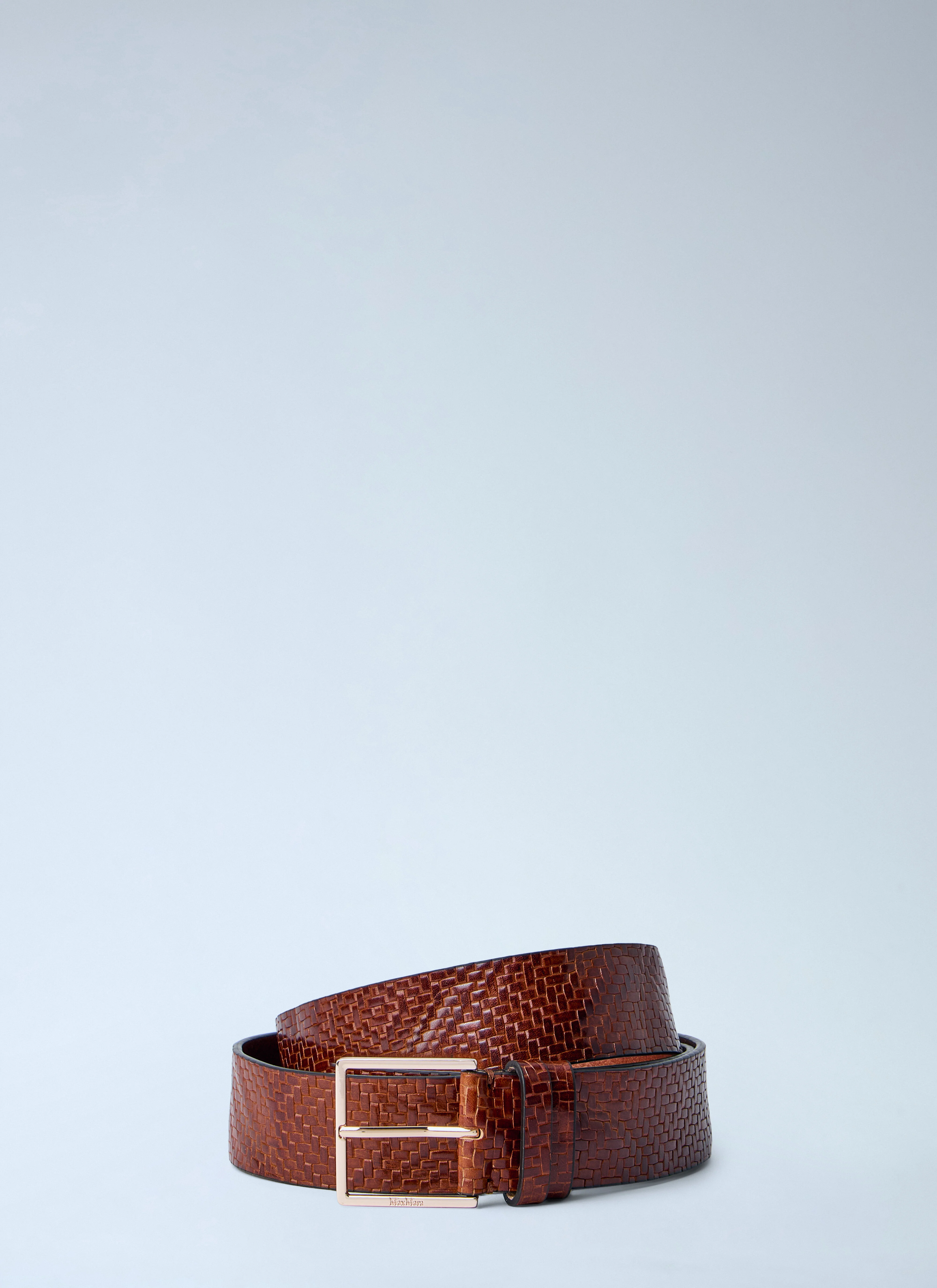 Textured leather belt with buckle fastening. - Punched holes - Textured finish - Metal buckle - 100% Leather - Color: Brown - Code: 2614501042600 001