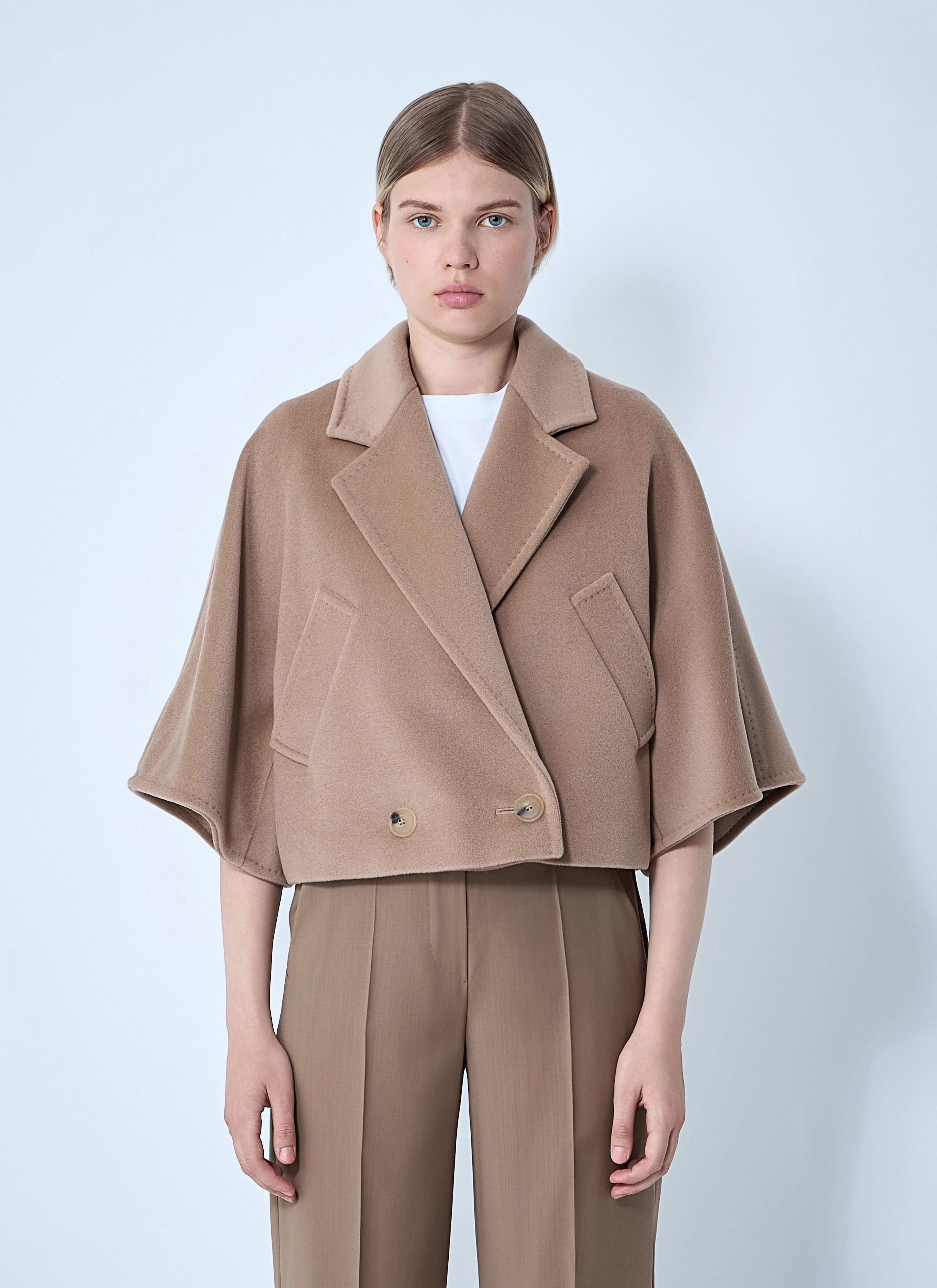 Double-breasted cropped jacket in wool. - Notched lapels - Double-breasted-button fastening - Three-quarter-length sleeves - Chest slip pockets - Cropped - 100% Wool. Dry clean - Color: Camel - Code: 1086021600 001