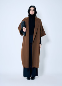 Notched lapel draped cape coat in camelwool. - Notched lapels - Single-breasted button fastening - Cap sleeves - Side slip pockets - 100% Camelwool. Dry clean - Color: Brown - Code: 2511011051600 009