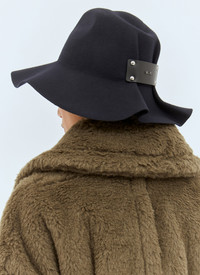 Wide brim hat in wool felt. - Fedora crown - Wide brim - Rear leather logo patch - Made in Italy - 100% Leather - Color: Navy - Code: 2424576042600 002