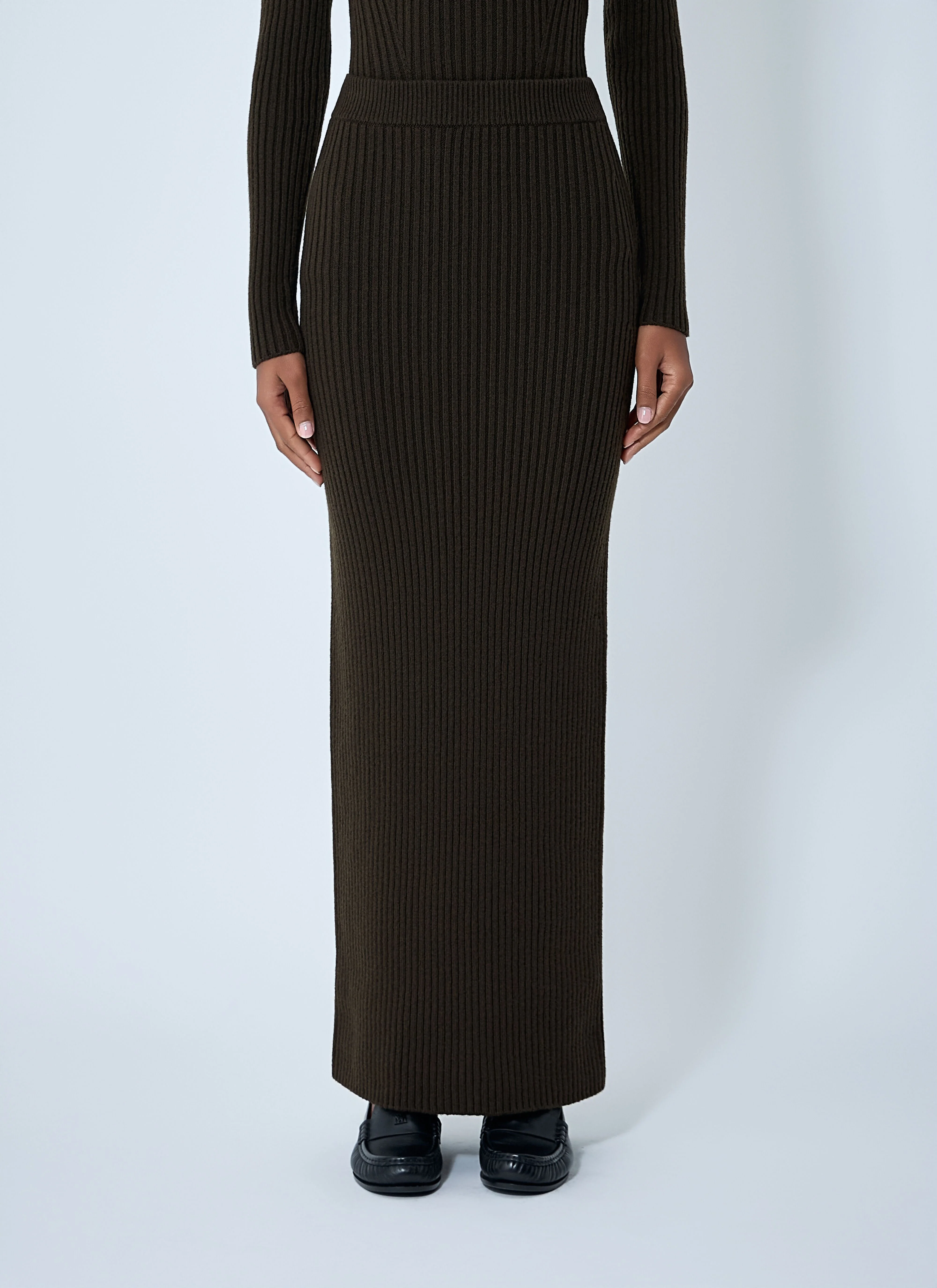 Ribbed knit skirt in full-length silhouette. - Elasticated waistband - Ribbed construction - Straight hem - 100% Technical Fabrication Blend. Dry clean - Color: Green - Code: 2521306093600 006