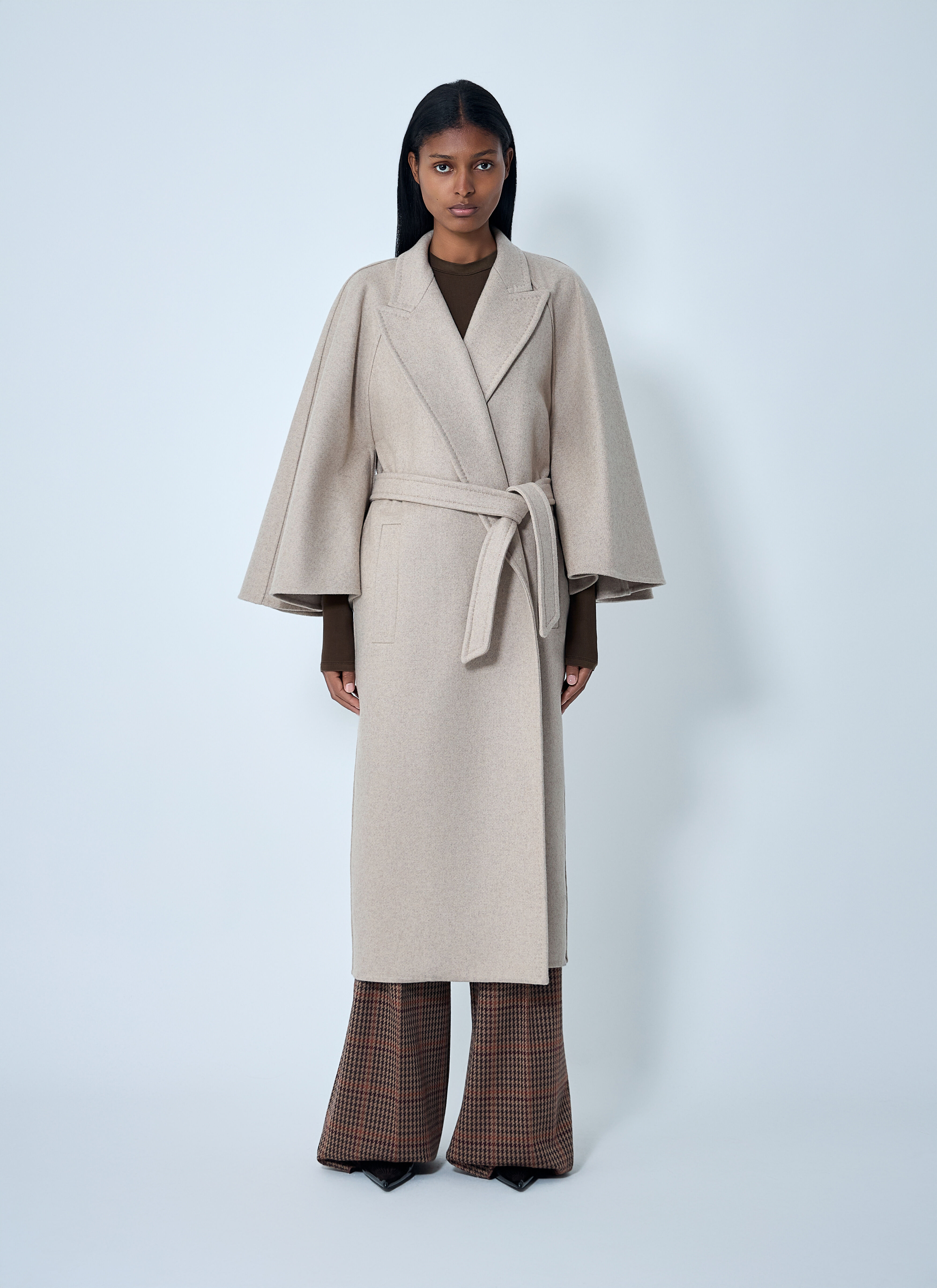 Tailored coat in cashmere twill. - Notched lapels - Front self-tie fastening - Long sleeves - Side slip pockets - Panel construction - Fully lined - 100% Cashmere. Dry clean - Color: Beige - Code: 2521016022600 001