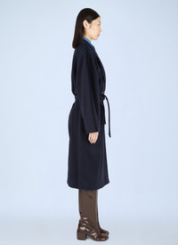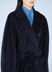 Madame 101801 Icon coat in wool and cashmere blend fabrication in a felted weave. - Notch lapels - Side slip pockets - Double-breasted button-fastening closure - Detachable self-fastening waist belt - 90% Virgin Wool, 10% Cashmere. Dry clean. - Color: Blue - Code: 1018011600 005
