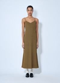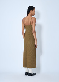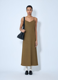 Knit midi dress with a slight metallic finish. - V neck - Spaghetti straps - Straight hem - 88% Cotton, 10% Polyamide, 2% Elastane. Hand wash - Color: Green - Code: 2511621019600 002